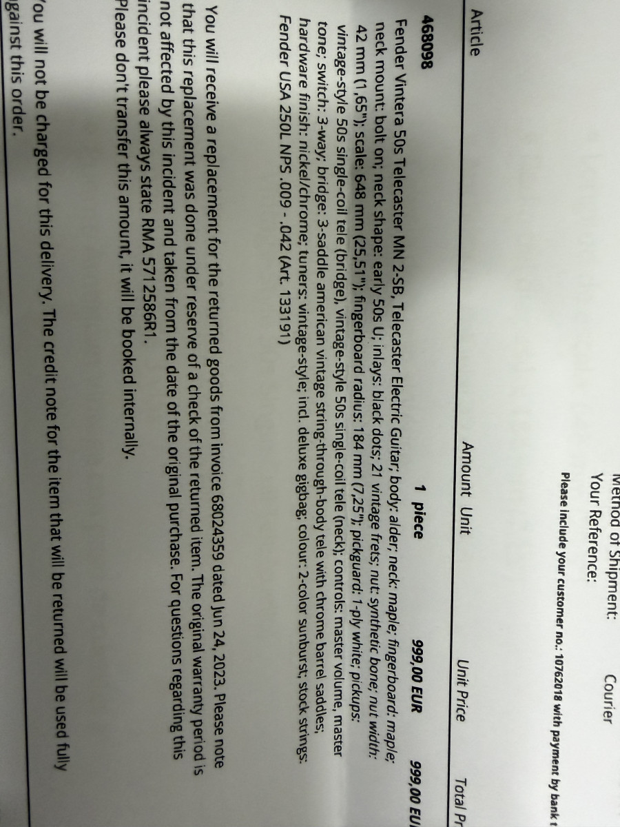 Incluyo foto de la factura con todas las especificaciones. La guitarra está probada cuatro ratos en casa, el estado es como de tienda. Para cambio, priorizo guitarras con tremolo o bigsby. No me interesan floyds ni metaleras. Ofertas coherentes en la valoración.