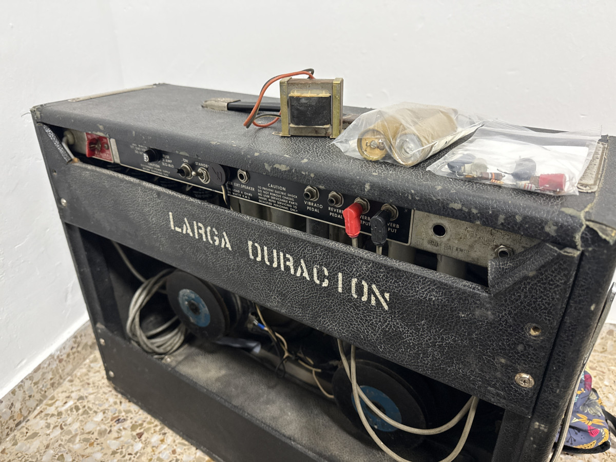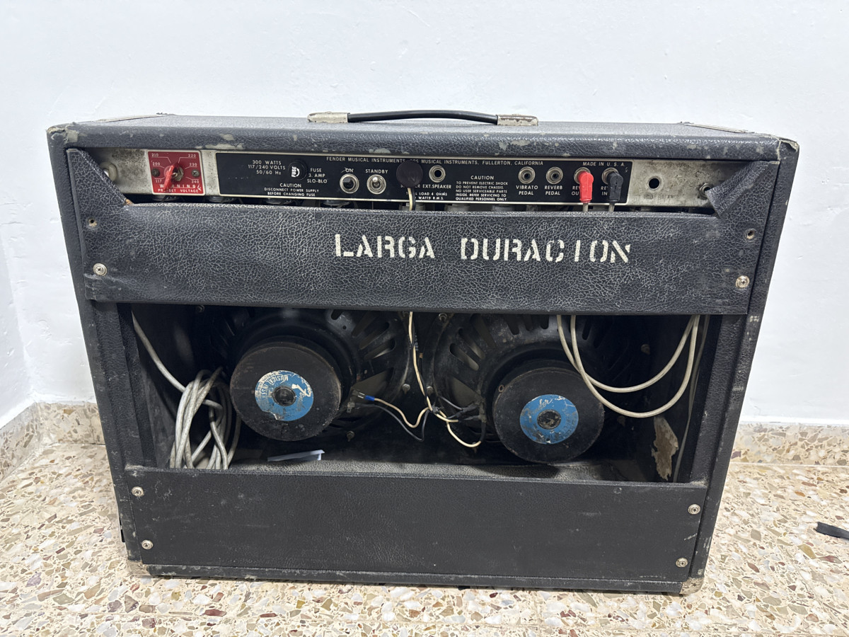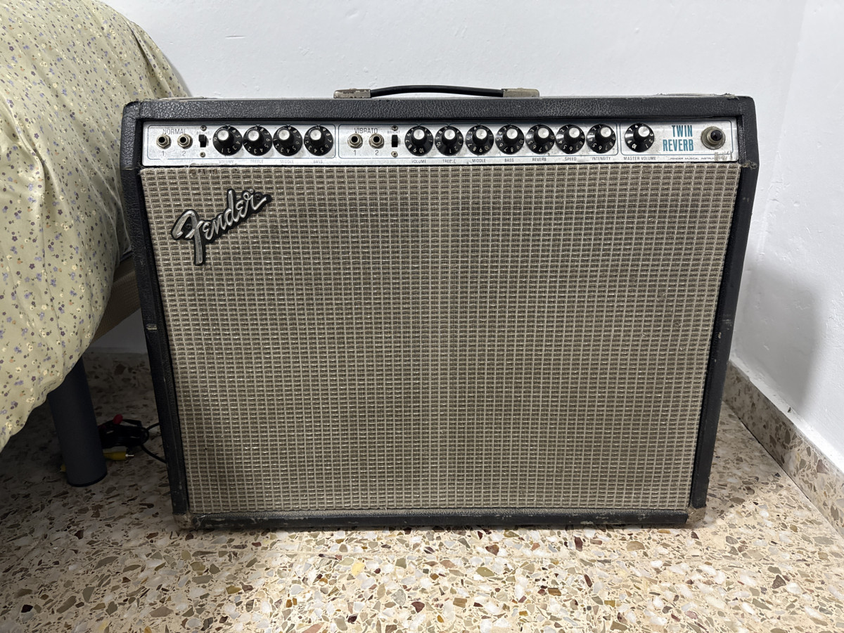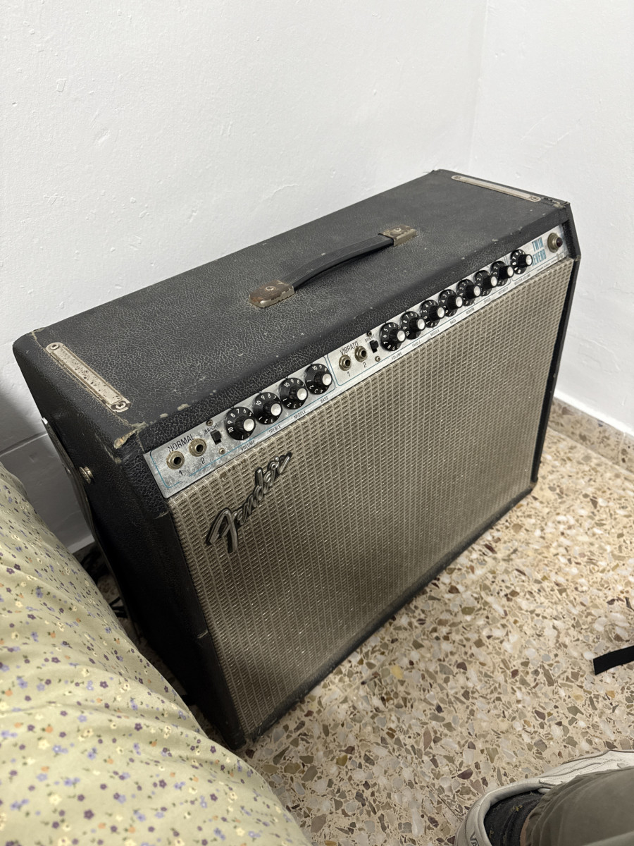Lo acabo de recoger del técnico que le ha hecho una puesta a punto en condiciones (380€ aporto factura e incluyo los elementos sustituidos) este Twin Reverb es punto a punto y suena a lo que tiene que sonar, de sobra conocido. Pero lo voy a tener en casa adornando el salón (literalmente) cabe decir que su estado estético es el típico de un ampli del 75. Lo vendo barato porque tengo prisa, nada más.
