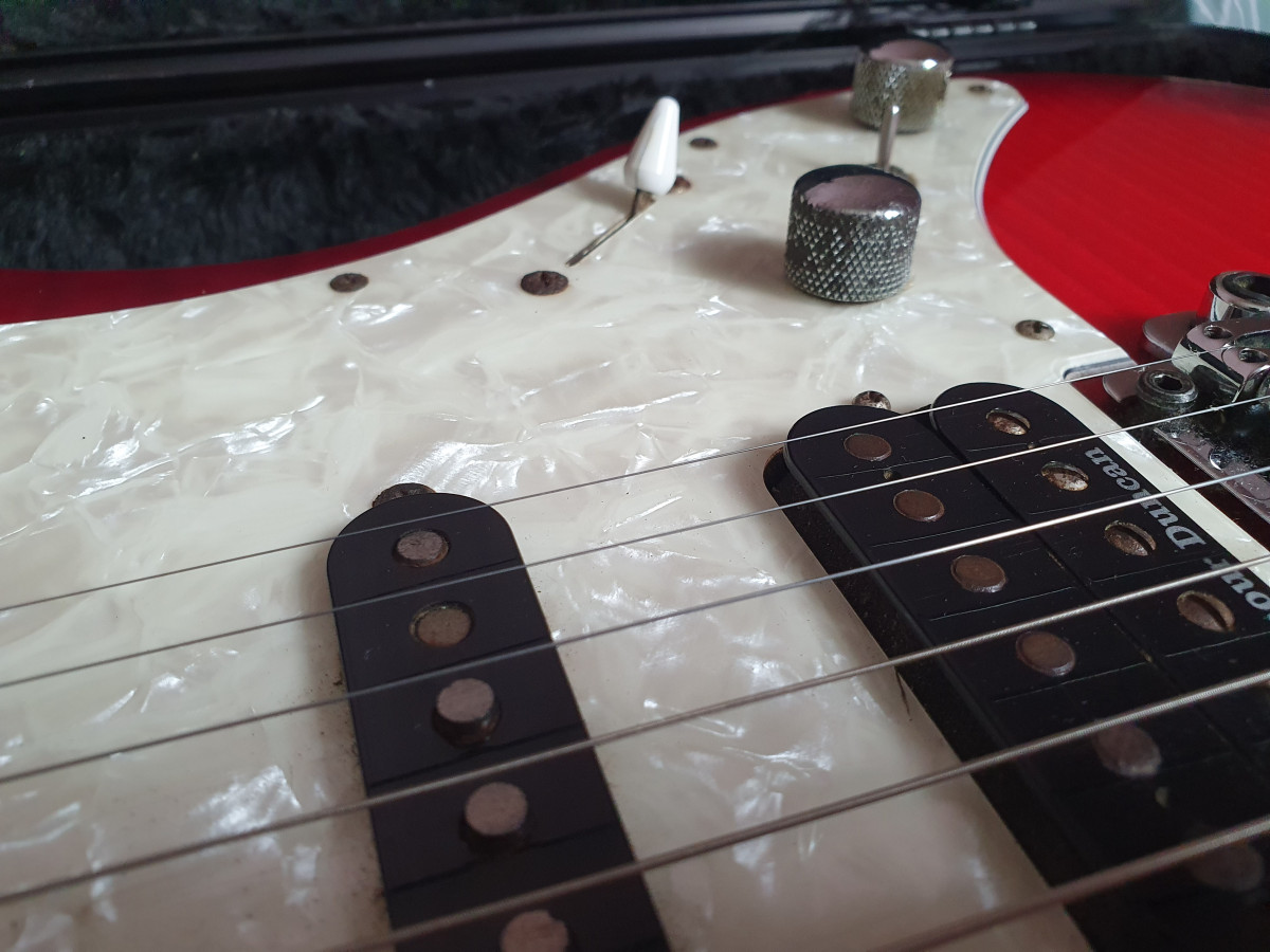 Lleva configuración HSS y un miniswicht para pasar la pastilla doble a simple.