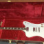 Epiphone Firebird color blanca pintada en Nitro, con electrónica mejorada, potes CTS, condensadores rusos, pastillas Gibson Firebird, puente abr1 y lleva afinadores Grover.
