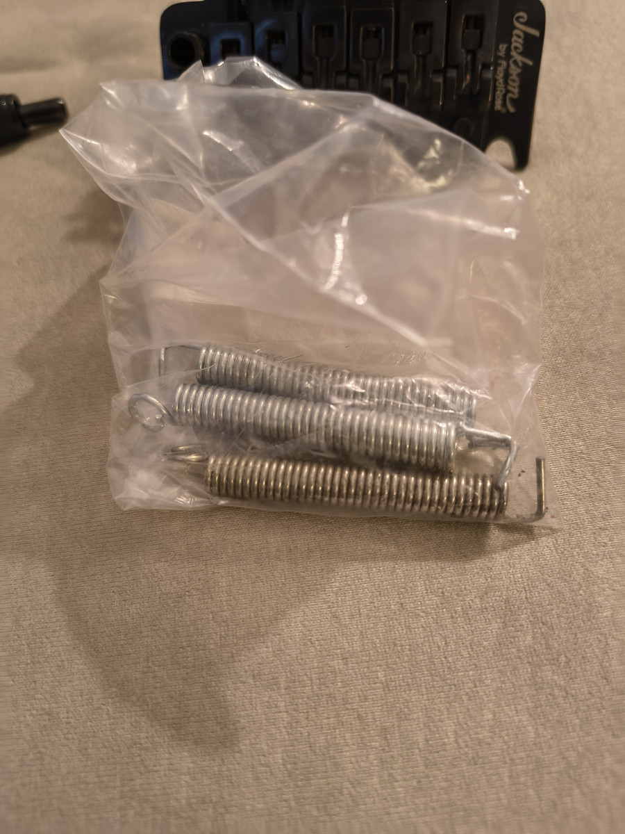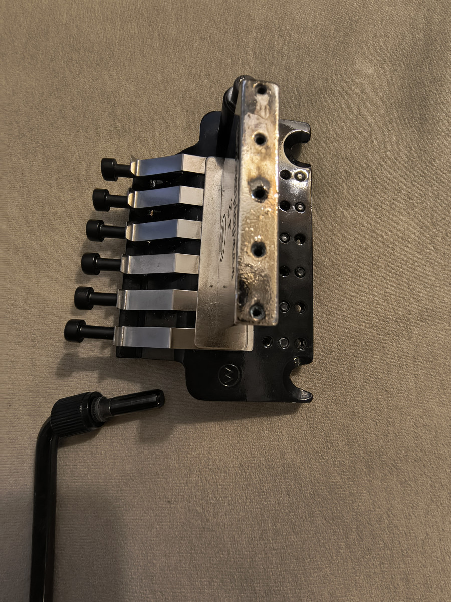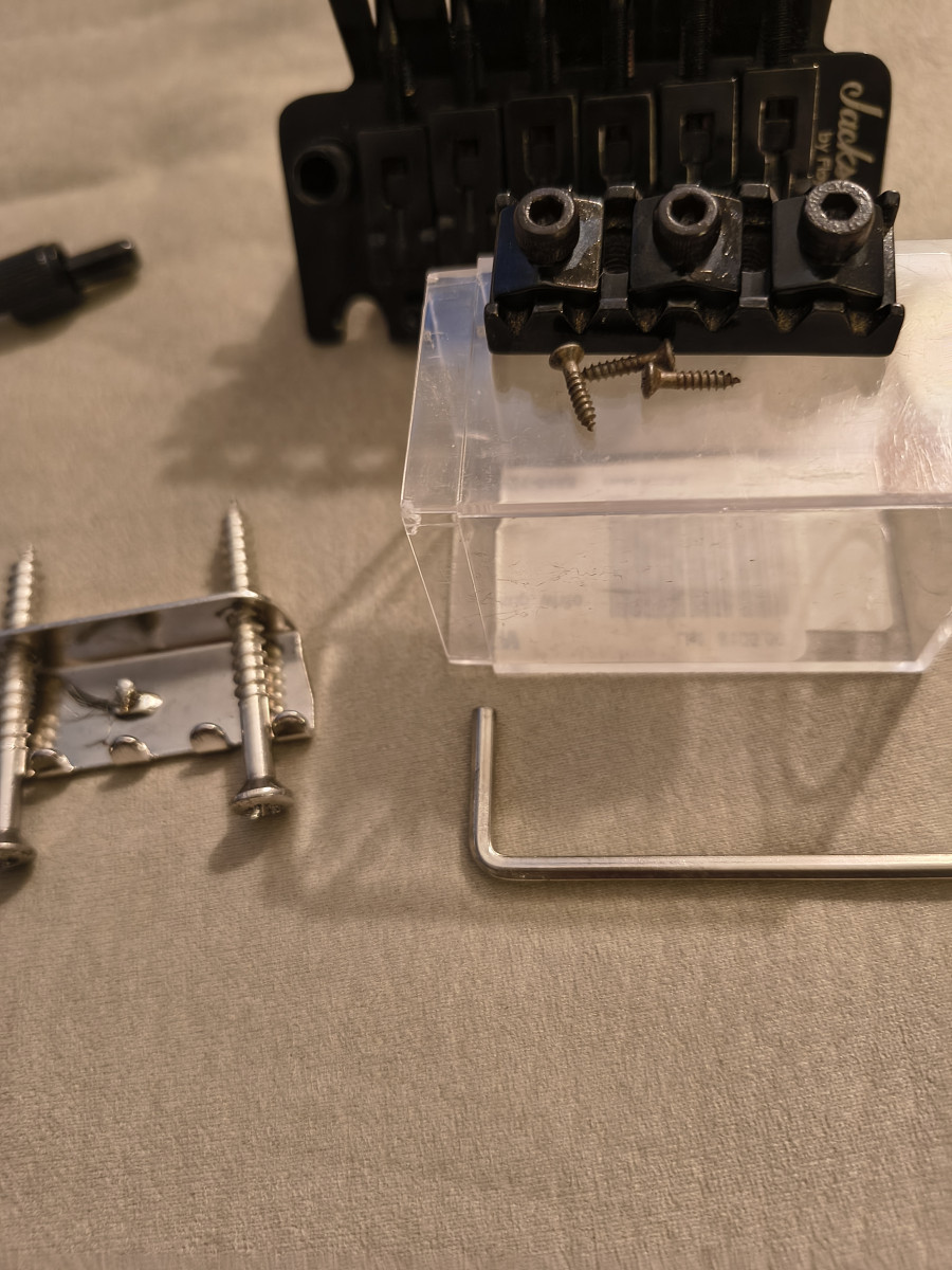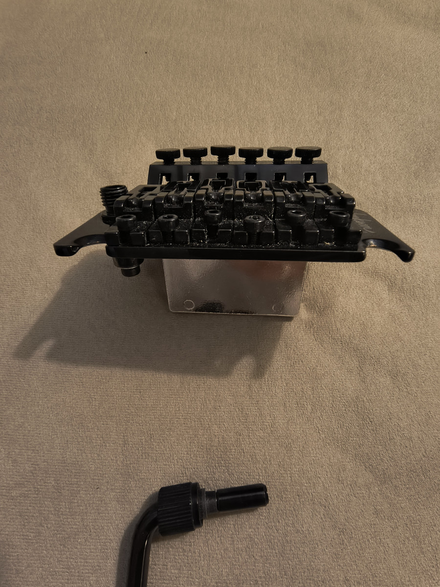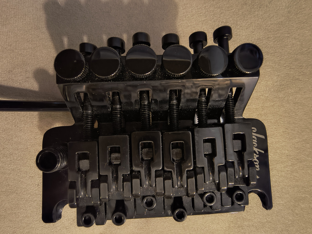 Vendo este puente Jackson by Floyd Rose (hecho por Schaller en Korea con licencia Floyd Rose) completo junto con todos los demás elementos de montaje en excelente estado. Sin marcas.