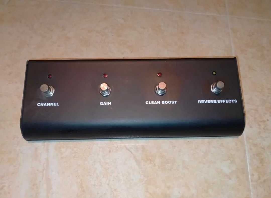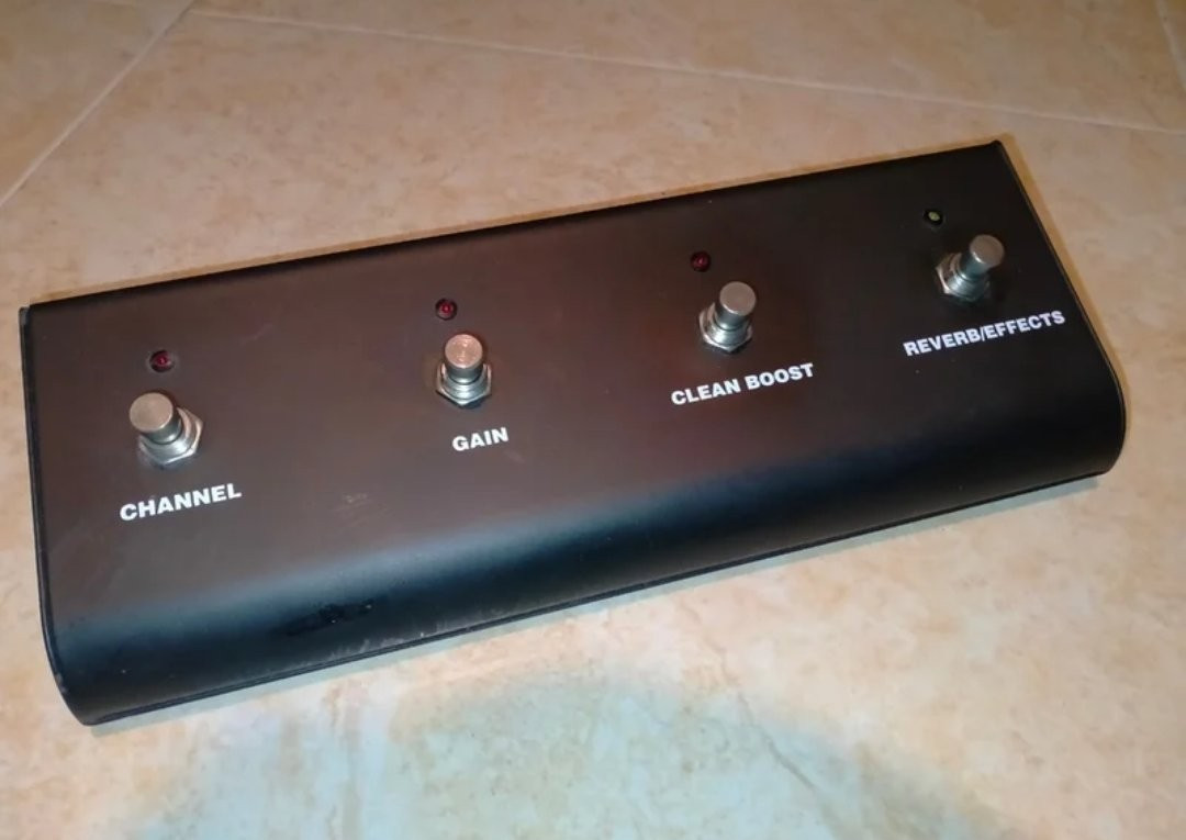 de 4 canales, lleva para pasar de canal clean a gain , gain 1 o 2, boost clean y reverb.