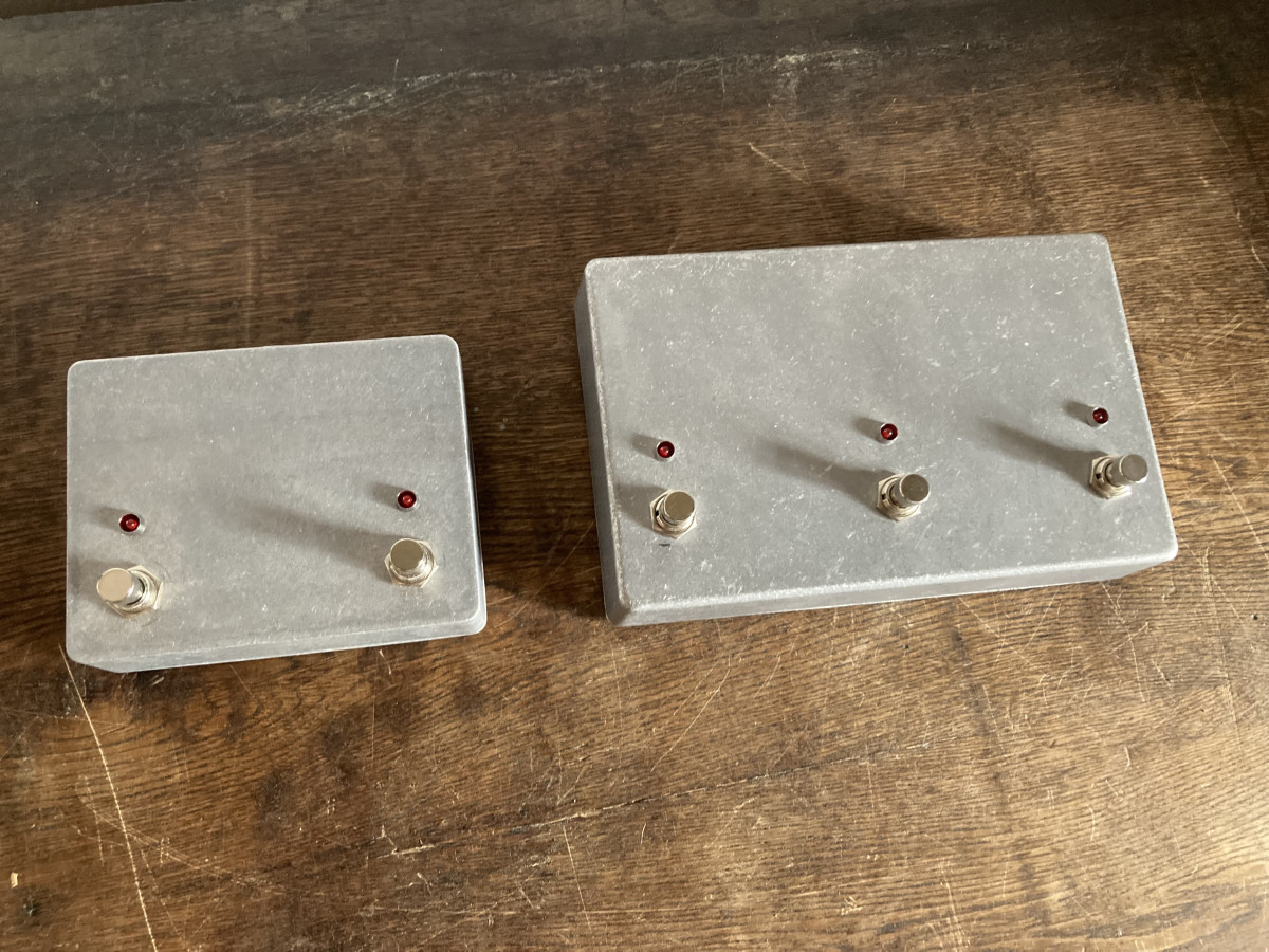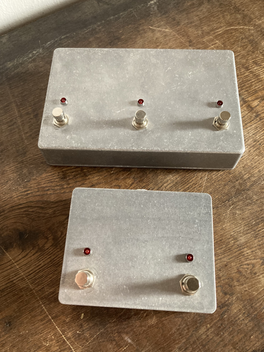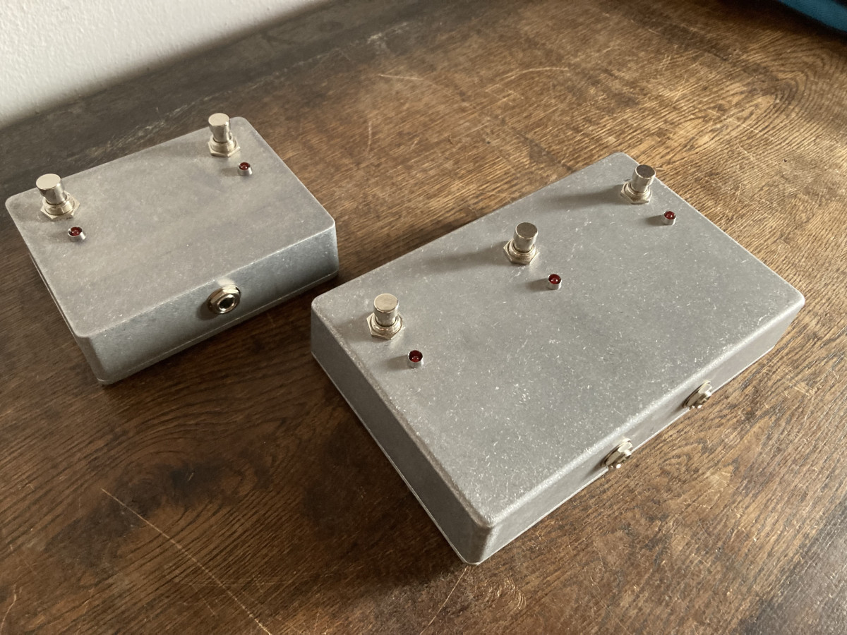 Uno es de 3 pulsadores como los originales con cambio de canal, Booster y FX Loop y el otro es de 2 pulsadores, este último solo con funciones cambio de canal y Booster.