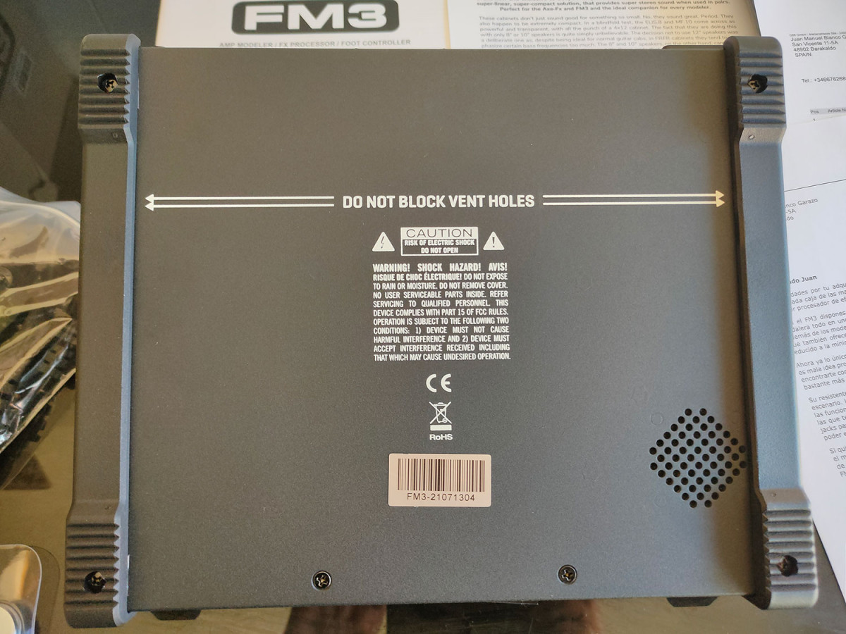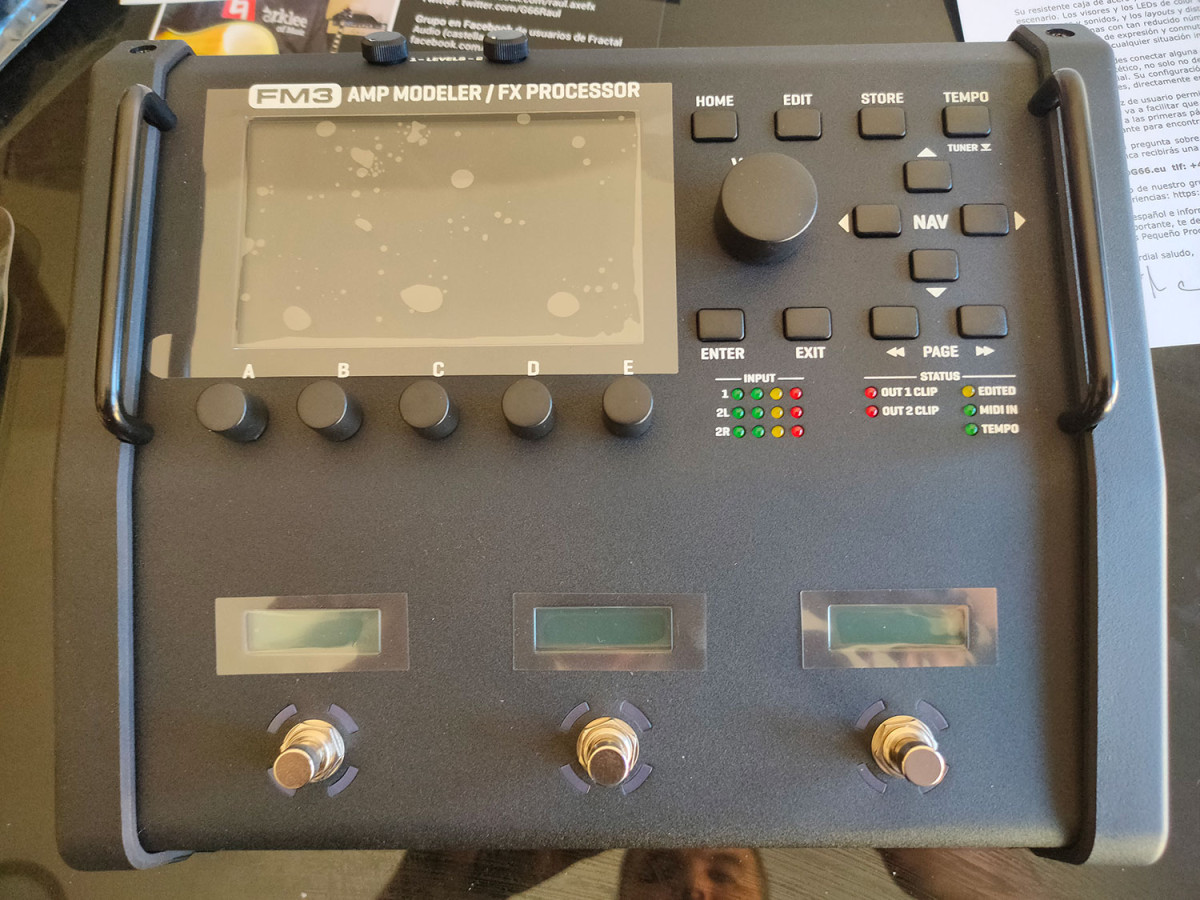- Fractal Audio FM3. Único dueño, comprado en G66. Es la versión MK.I, con salida de auriculares. En perfecto estado. Actualizado a la última versión de firmware. Tiene instalado un protector de pantalla Skeen, similar a los que se ponen en los móviles.