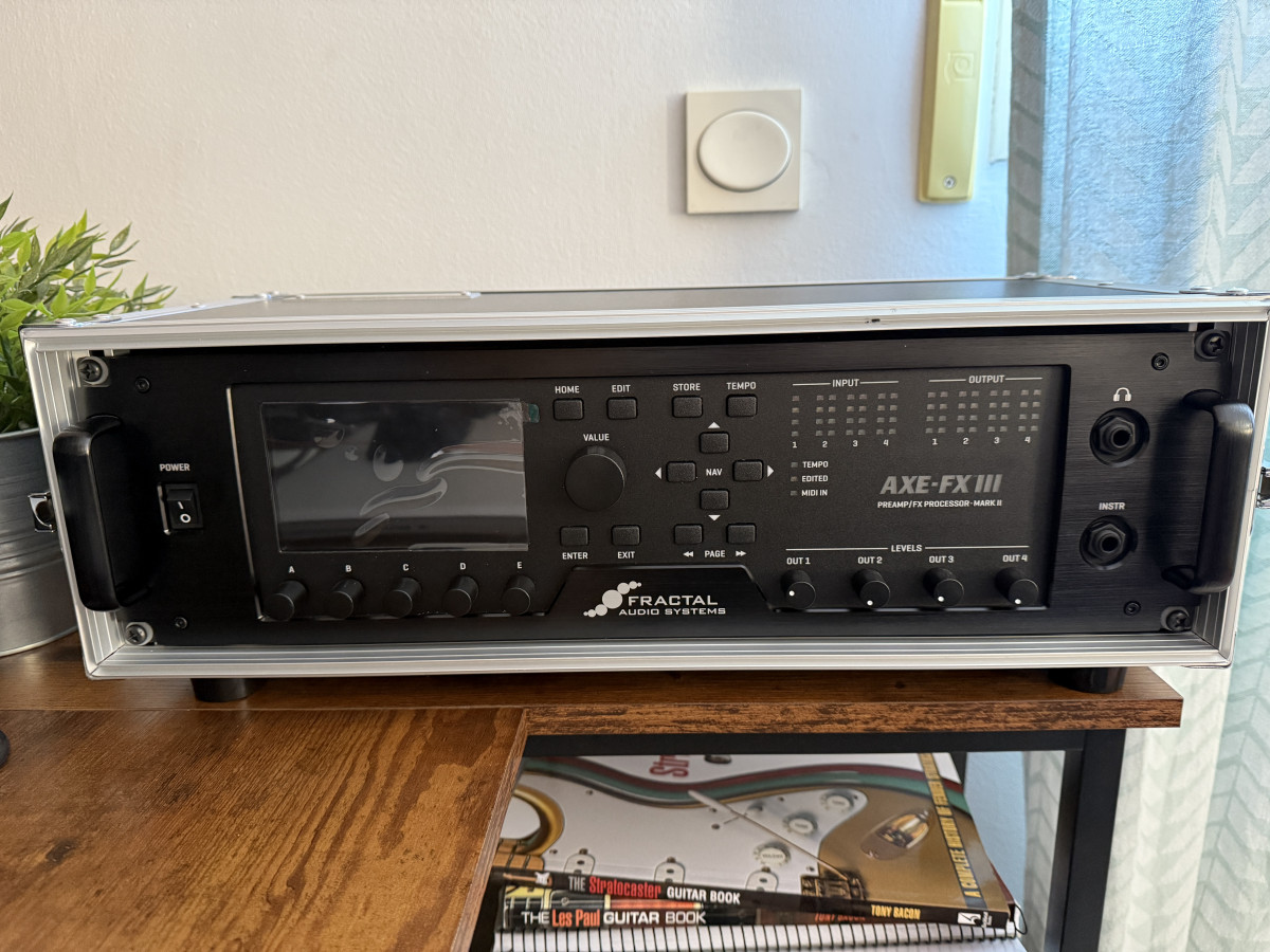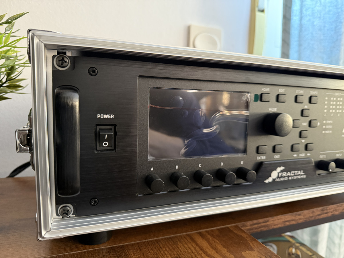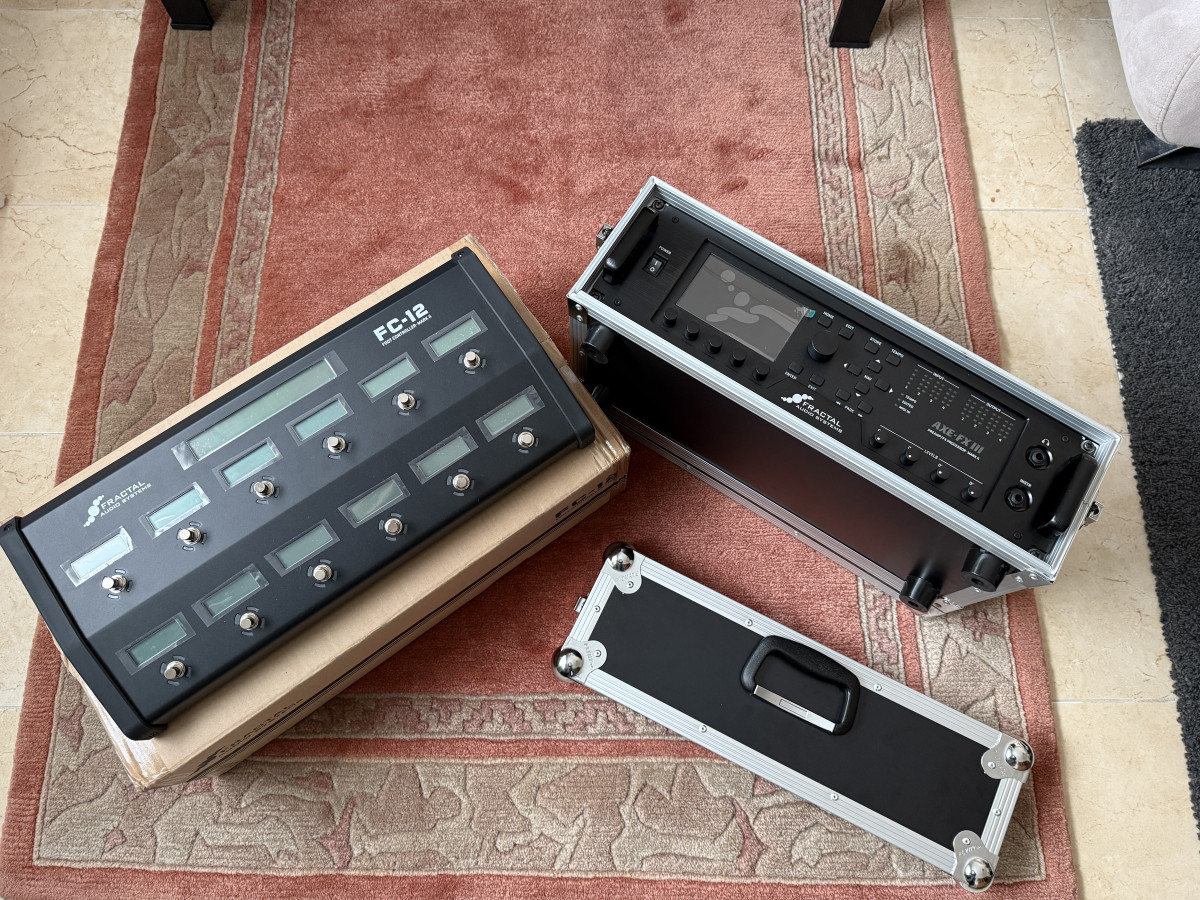 Pack compuesto por un Fractal Audio AxeFX3 MKII ojo es la versión TURBO con un 25% más de DSP, su pedalera controladora FC12 MK2 prácticamente a estrenar (más de dos años de garantía por delante) y un rack de 3U.