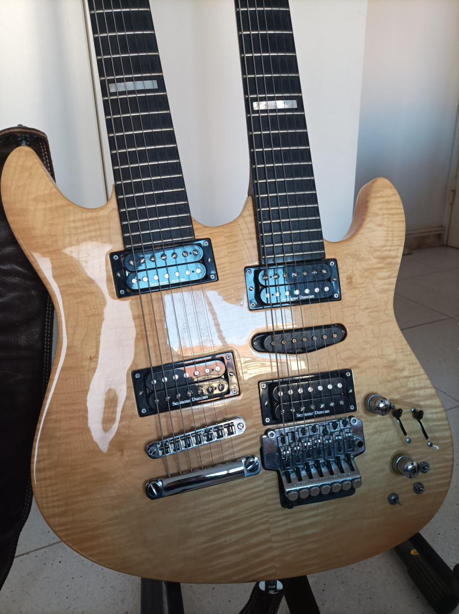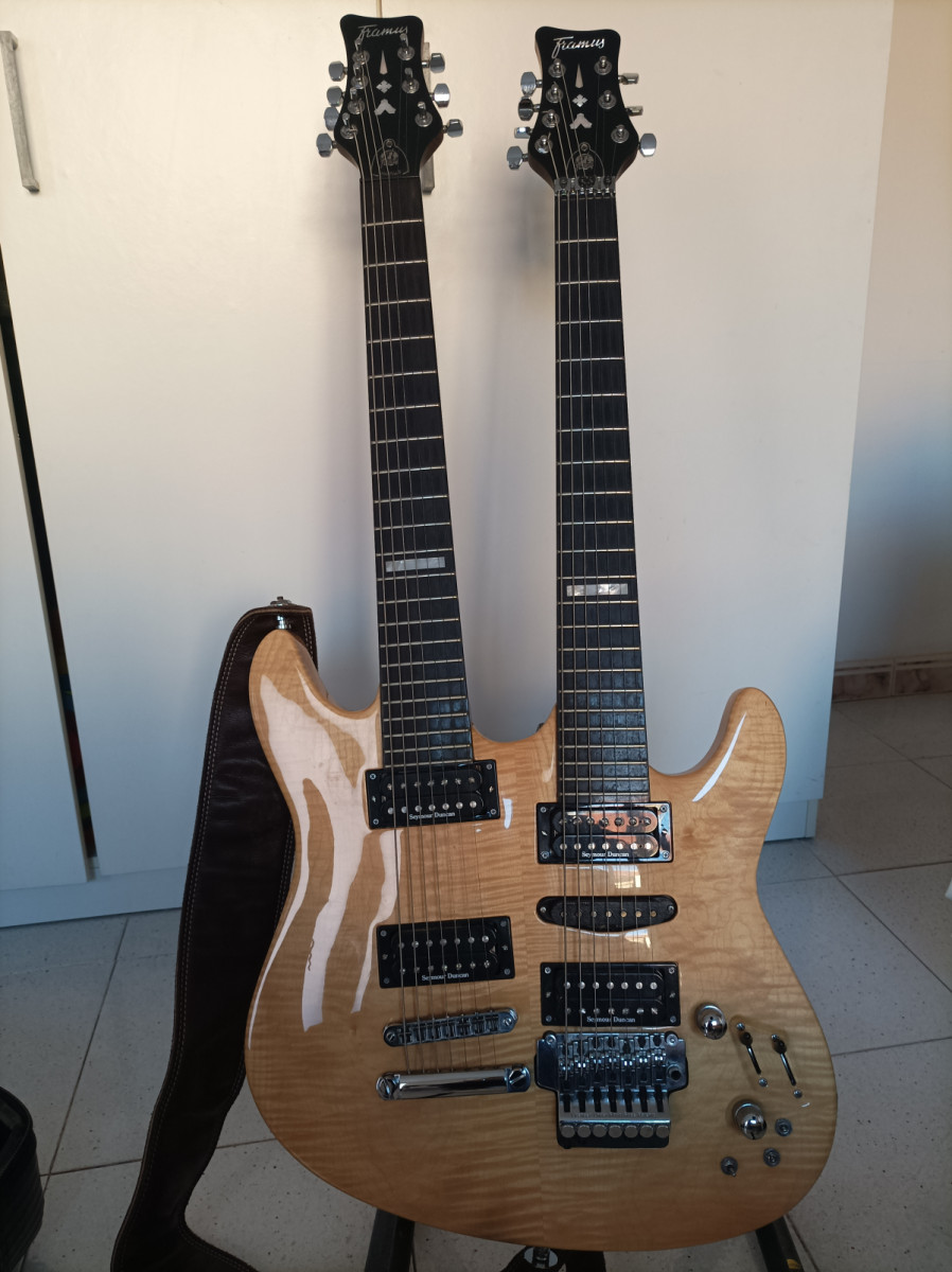Framus Camarillo custom shop doble mastil de 7 cuerdas con funda Rock Bag