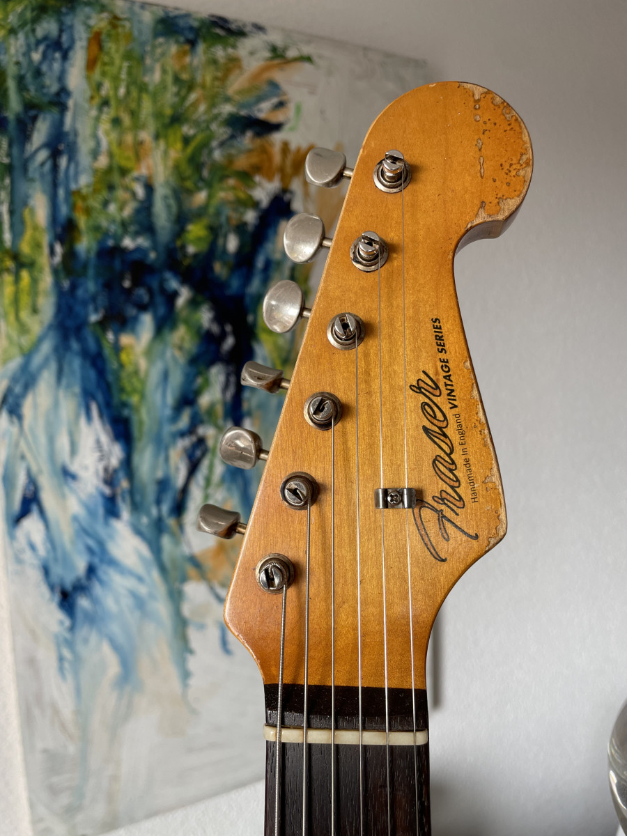 La numero 208 del luthier Dean Fraser, de Reino Unido famoso por sus grandes trabajos con el envejecimiento de los instrumentos y calidad de construcción.
