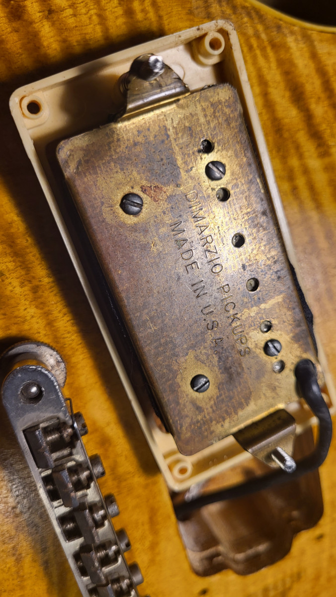 Instaladas 2 pastillas ORIGINALES set clásico por excelencia en rock-hard de finales de los 70s: Dimarzio: Superdistortion + PAF classic