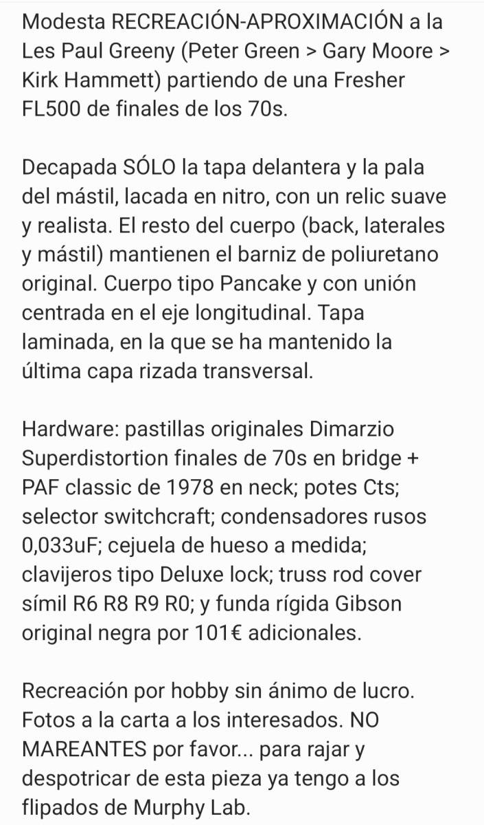 ⚠️AJUSTO PRECIO para colaborar con el envío, dinamizar su venta y optar a otra guitarra; si se vendiera, ésta Fresher volverá a los 900€⚠️