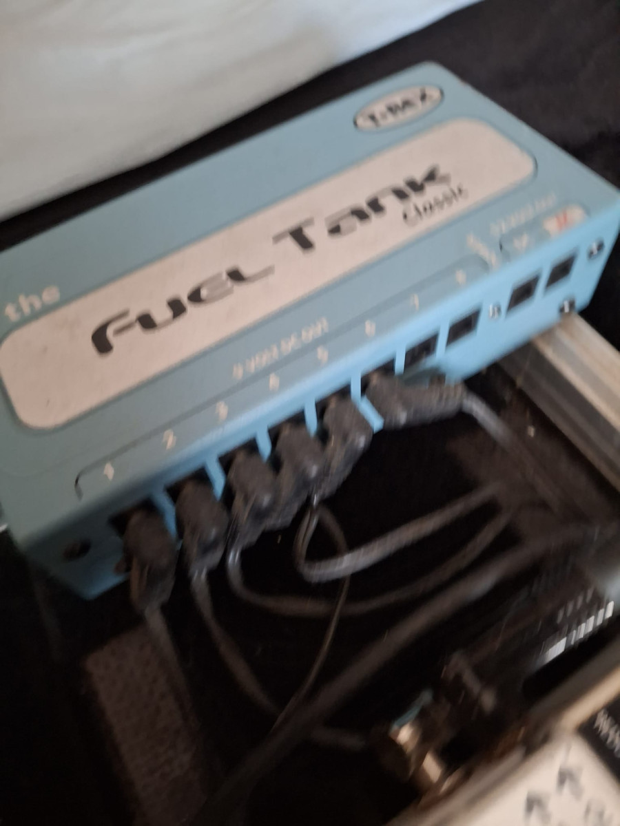 Una fuente de alimentacion T-REX para pedales con 8 salidas.