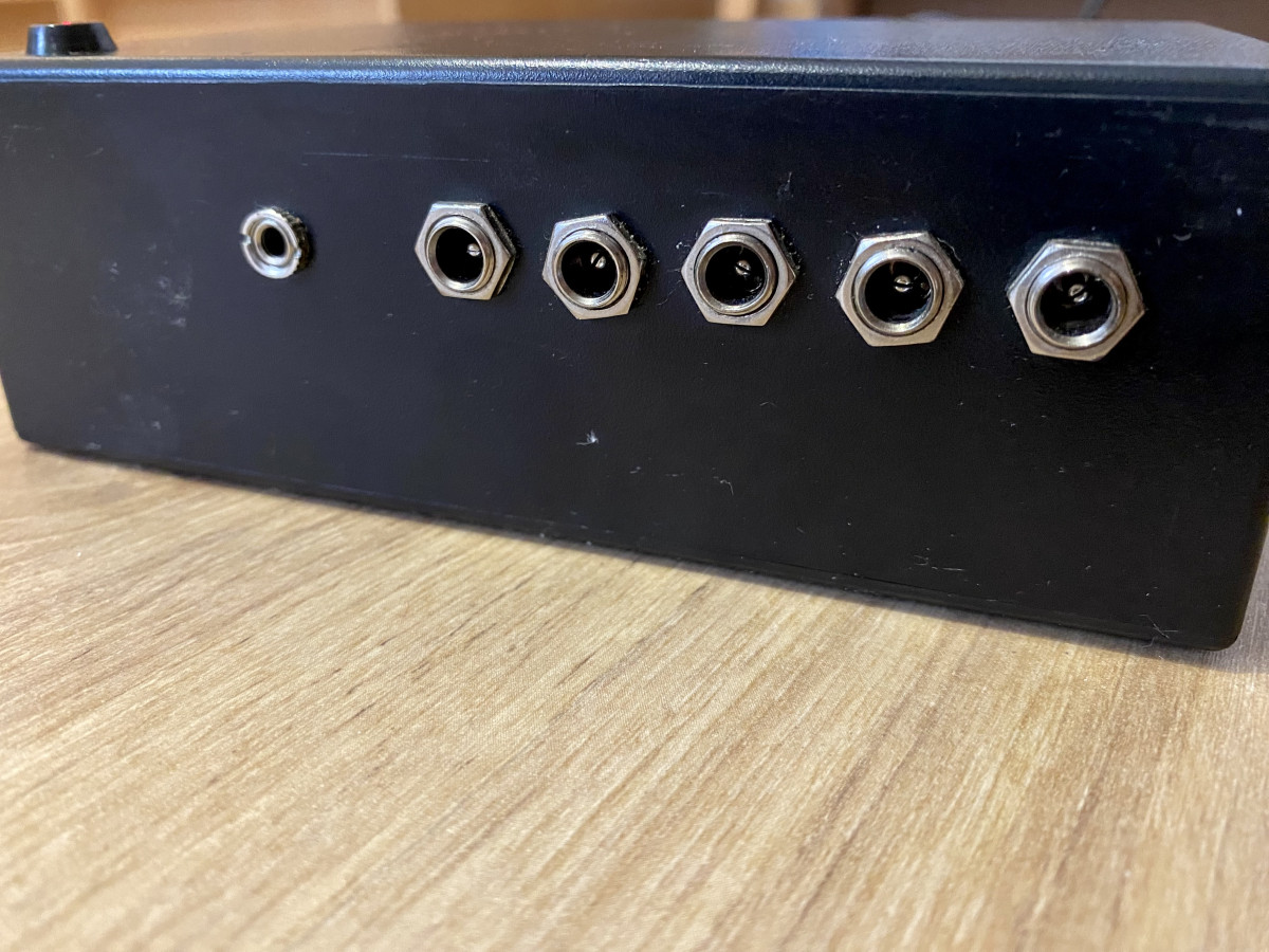 Tiene 5 conectores de centro negativo y 1 conector de Jack 3,5mm.