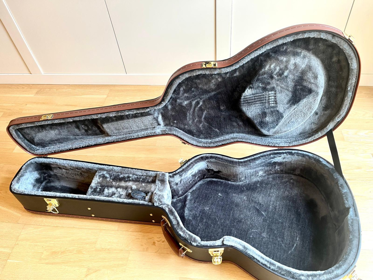 Estupenda funda rígida de la marca Epiphone para guitarras tipo Dreadnought y Epiphone Advanced Jumbo