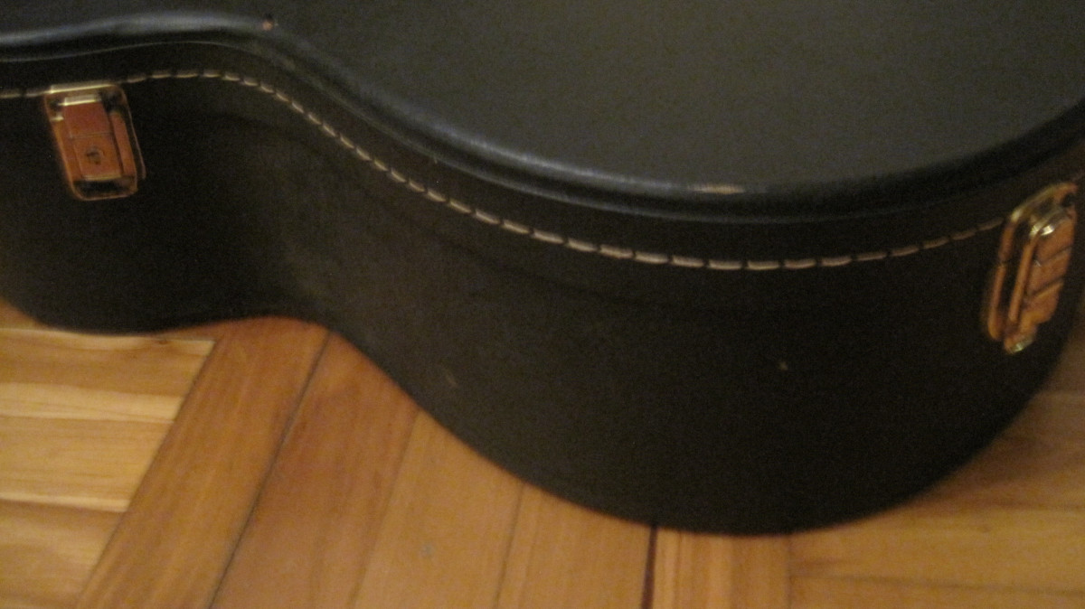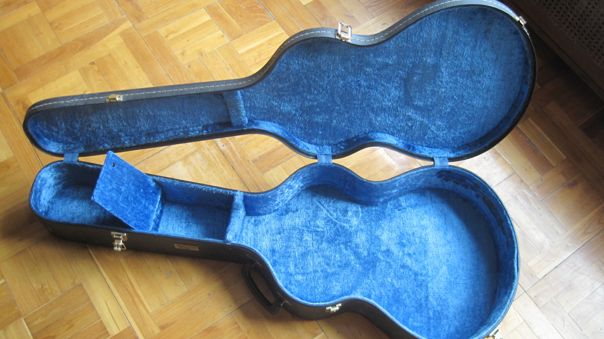 Estuche o maleta vintage, calculo años 70, para guitarra acústica Yamaha, usada pero en buen estado, cierres bien. Mide 112 cm de largo, 43 de ancho en la parte más ancha y 34 en la segunda más ancha, y 15 cm de grosor. Podría cambiar por pedales o pastillas. Hago envíos.