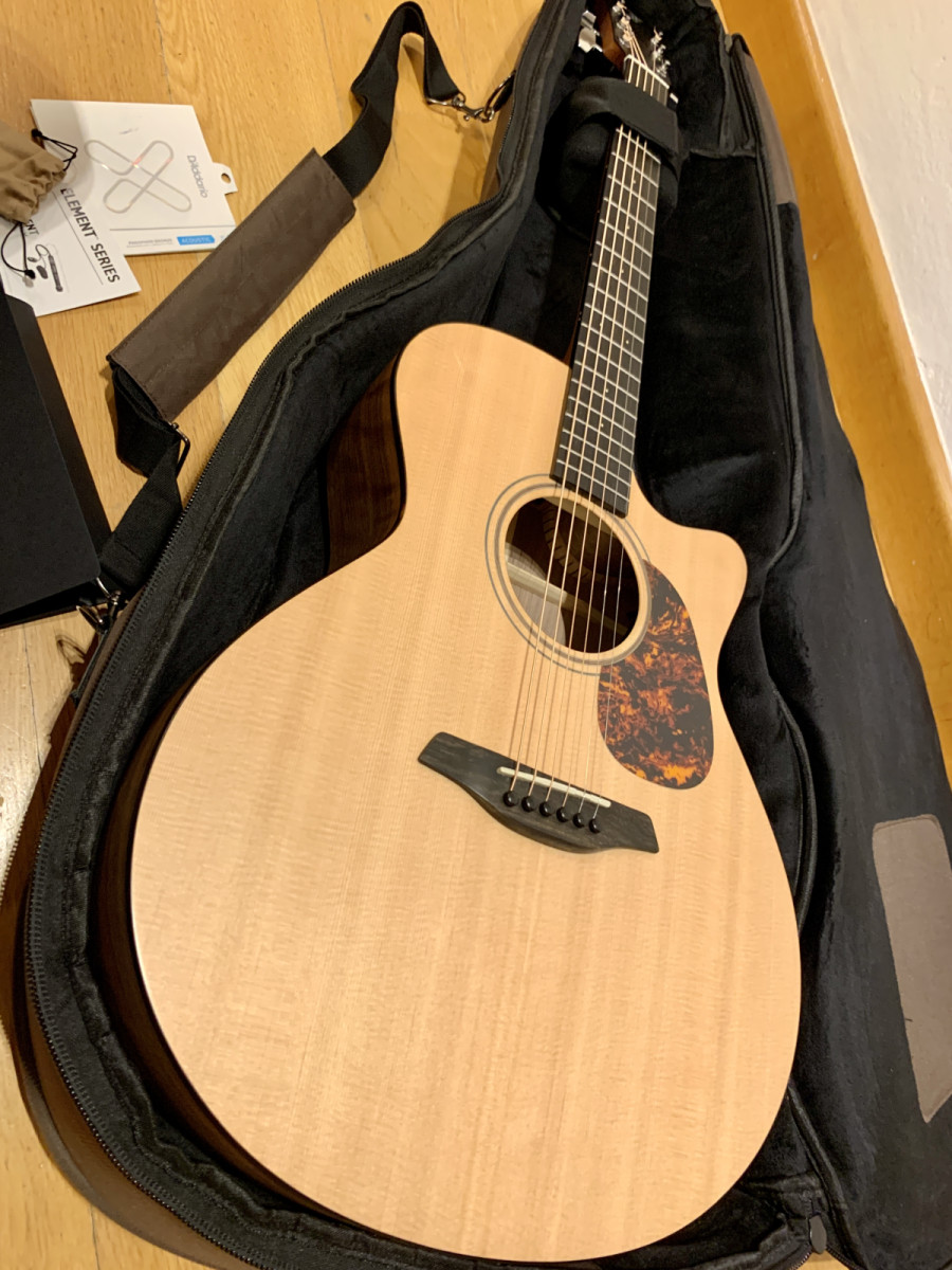La guitarra está impecable y ajustada con un juego de cuerdas D'Addario XSAPB1253 recién puesto (como si la compraras de tienda). Es una guitarra muy resonante, con mucha proyección y tono amaderado (una pasada). Vendo por exceso de instrumentos, así que no ofrezcáis cambios (SOLO VENTA). Solo la funda ya cuesta 88 euros, así que se trata de una buena oportunidad para hacerte con este excelente instrumento.
