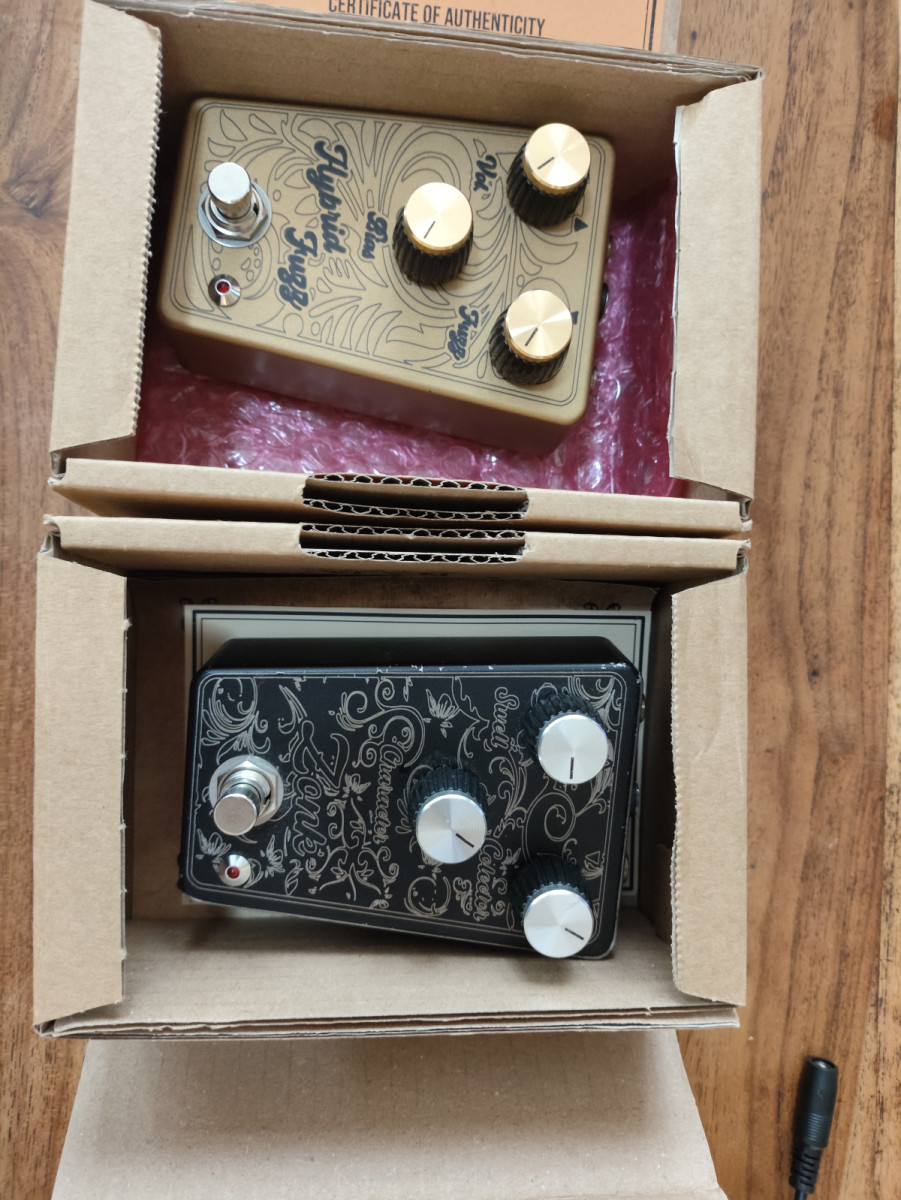 Hybrid fuzz con transistores de germanio y de silício, es un fuzz tipo fuzzface con un grano muy chulo ,bias interno y componentes NOS...110€