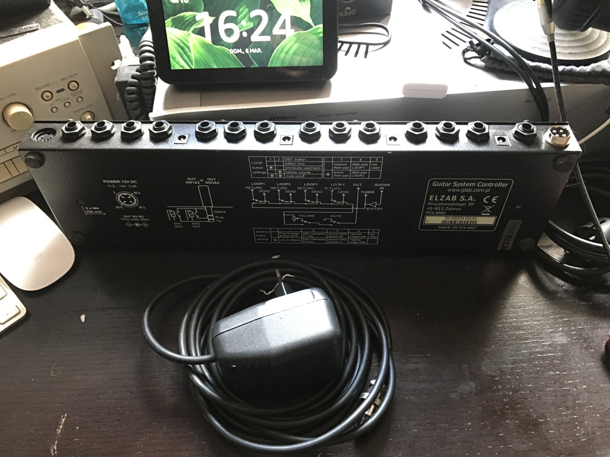 Entrada de guitarra y salida a dos amplificadores, midi para controlar multiefectos, a la vez controla los canales de los amplis