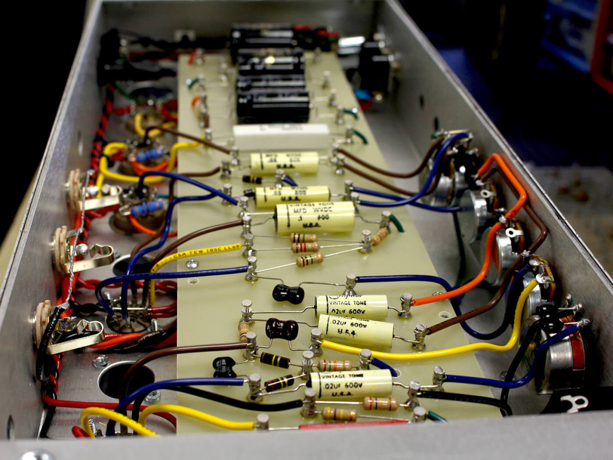 El Texas-Deluxe funciona a 15 W con válvulas 6V6GT, pero también puede alcanzar los 20 W con válvulas de potencia 5881, 6L6 o 6L6G, lo que te da la flexibilidad de elegir entre una ruptura clásica y un amplio margen dinámico.