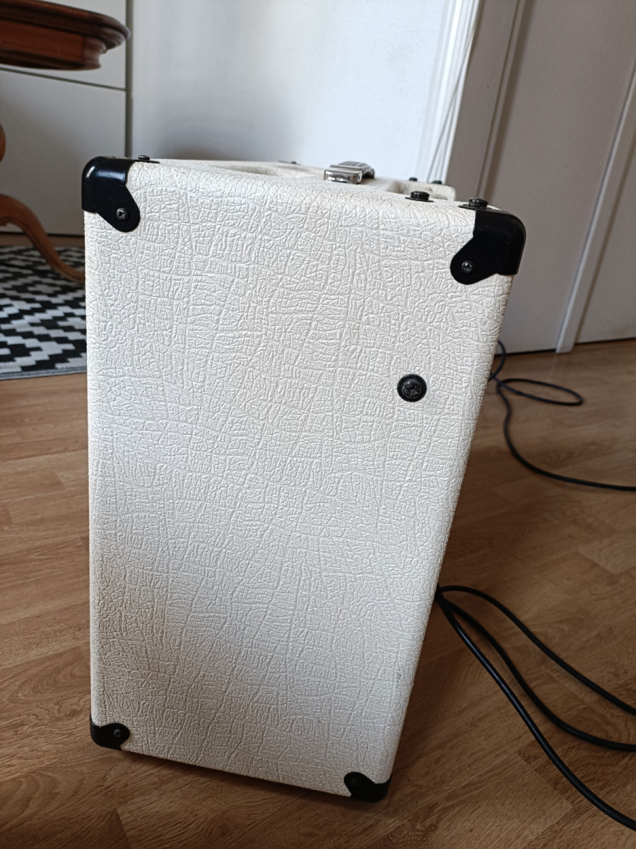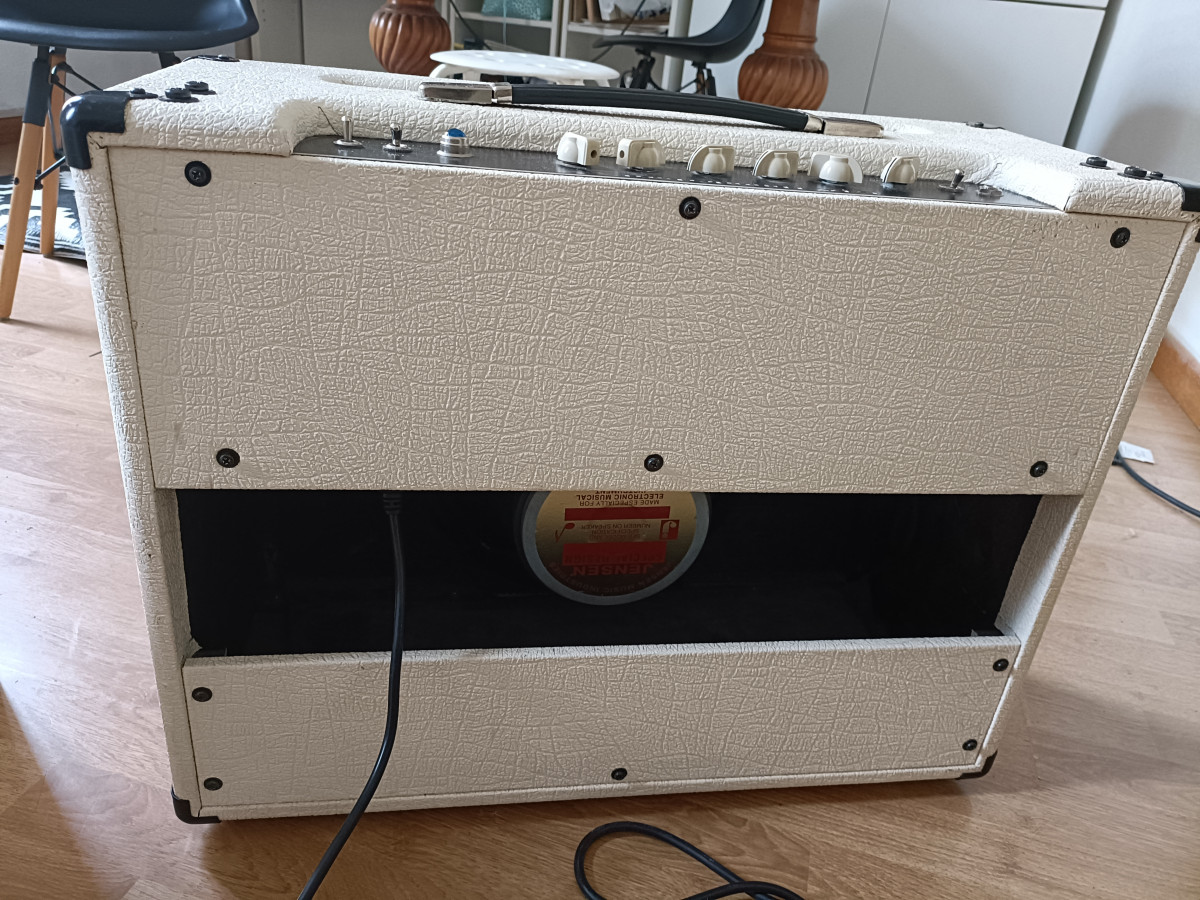 Tiene cambiado el cono por un Jensen C12k, pero conservo el Celestion V30 con el que venía de origen y que entrego junto al amplificador.