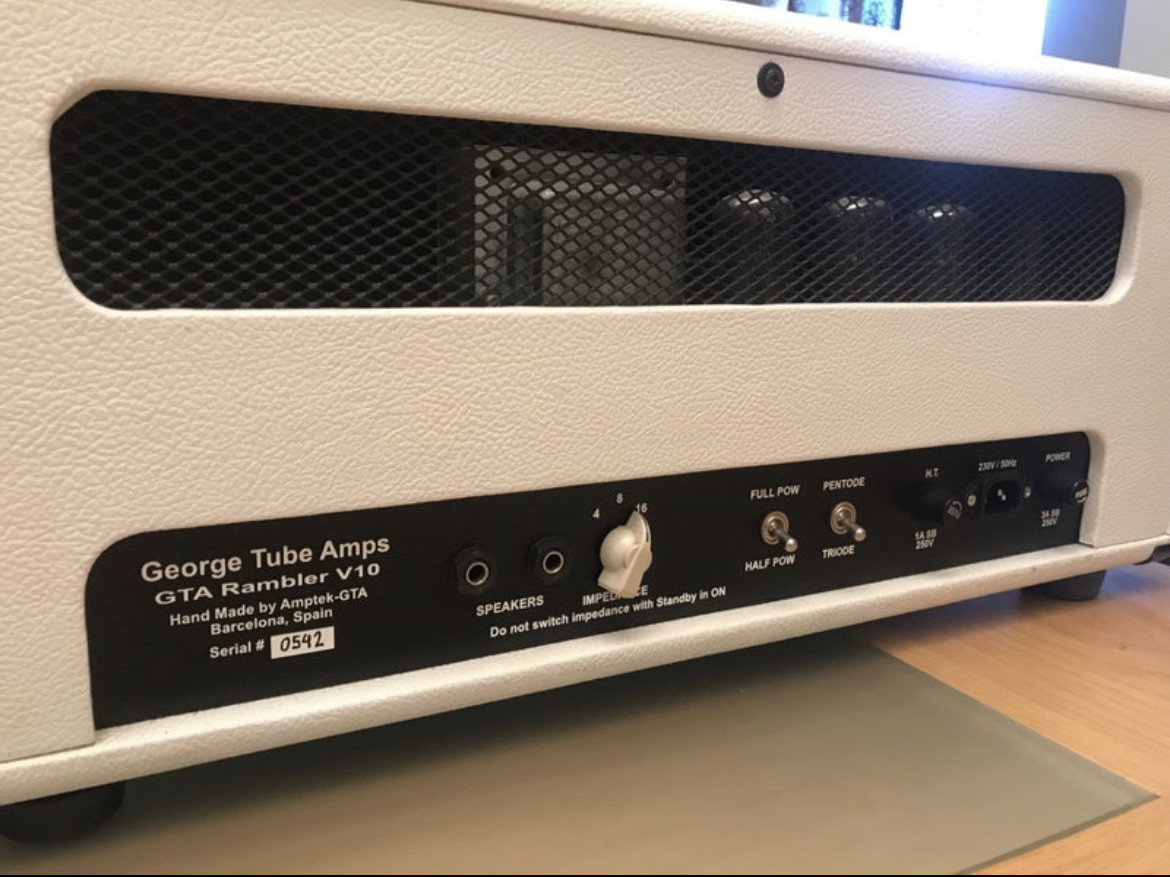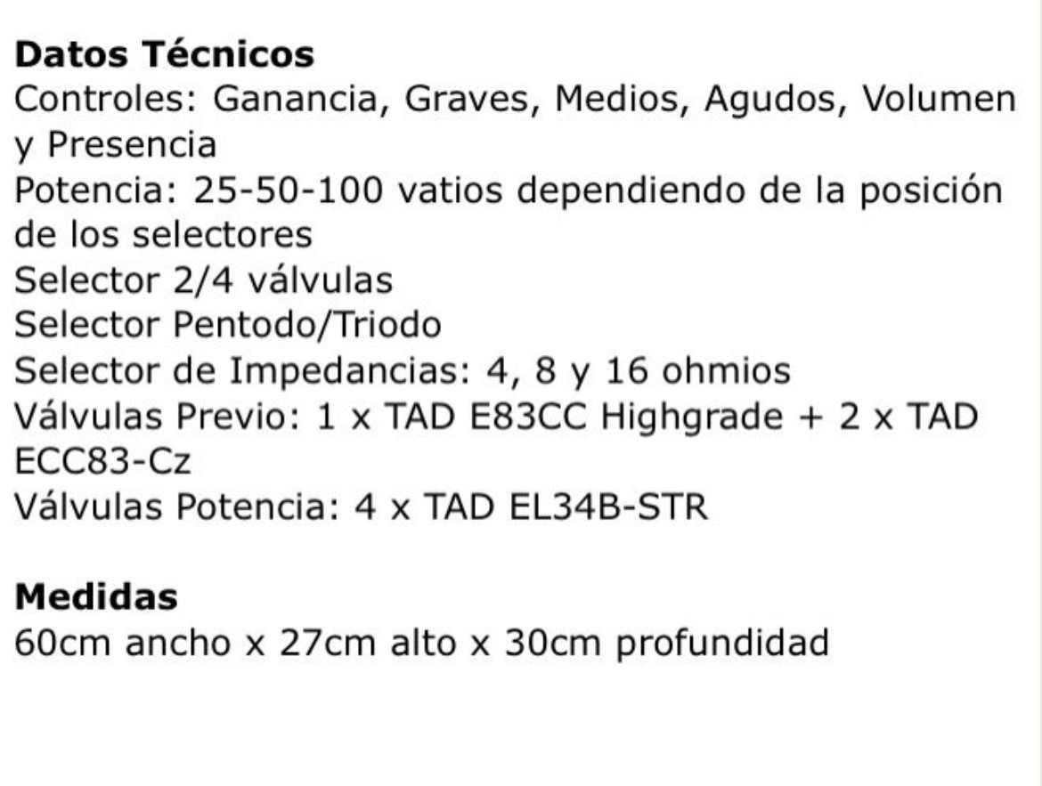 Cabezal estilo Plexi con master volumen y 100w reducibles a 50w y 25w. Suena de miedo y es totalmente transparente con todo tipo de pedal.