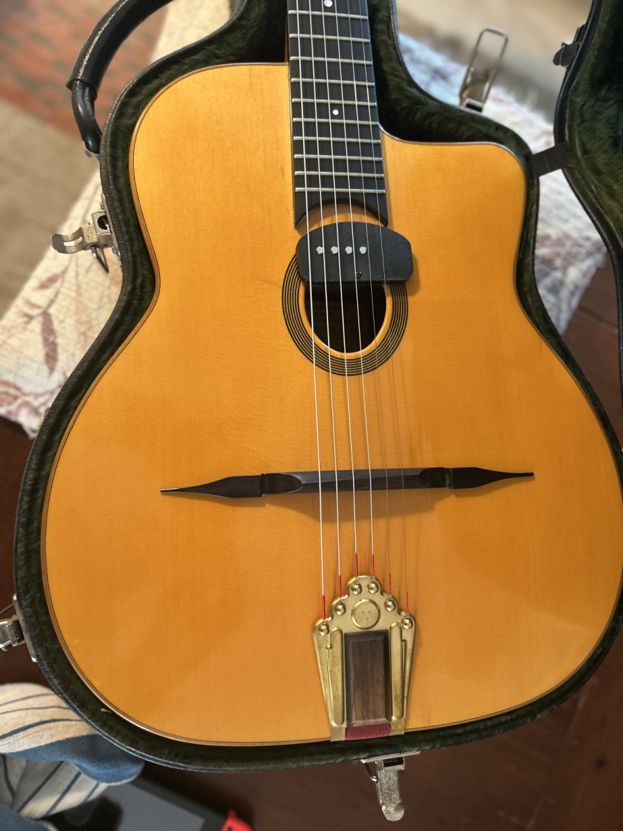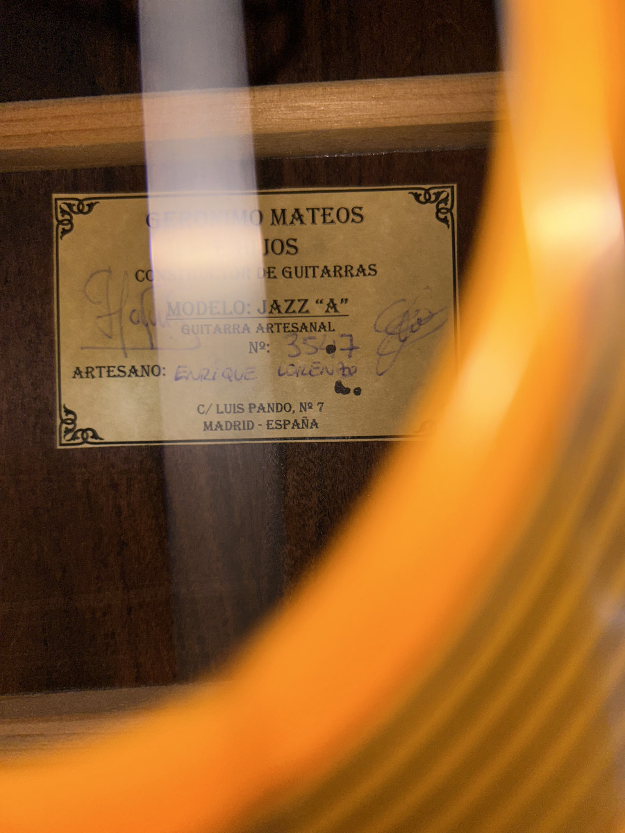Guitarra del prestigioso luthier Geronimo Mateos, uno de los mejores luthier de guitarras manouche. Vendo por cambio de estilo, me da pena no usarla, es un guitarron, incluye pastilla LC Pickup y funda rigida. Actualmente su precio con la funda es de 3265.