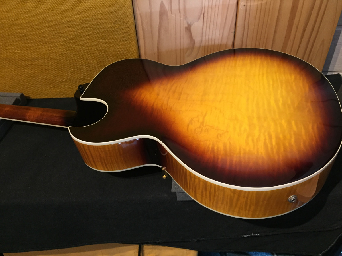 Gibson Memphis 2010 ES-175 Custom Shop, con certificado de autenticidad. Unico modelo de ES-175 con herrajes dorados. Color Vintage Cherry Sumburst con su estuche original Gibson Custom. Cuerpo de maple flameado laminado de 3 capas, mástil de caoba de una pieza y diapasón de rosewood. Pastillas Classic 57, puente Gibson ABR-1 sobre rowewood, clavijas Gibson Deluxe tulipa. Gibson ha cerrado la planta Custom Shop de Memphis y ha dejado de fabricar la legendaria ES-175. Estado impecable, muy poco uso. Especial coleccionistas!!