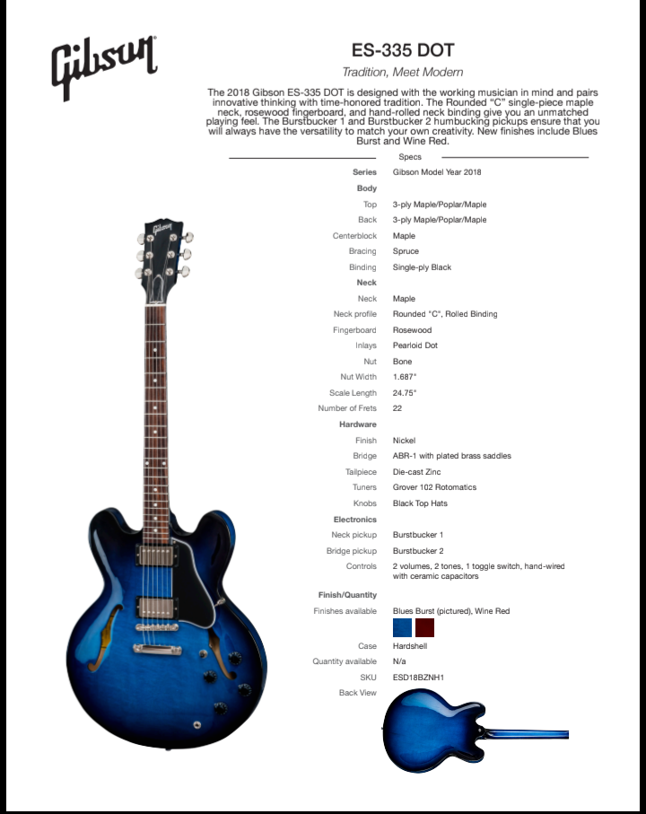 Buenas, pongo a la venta la Gibson Es335 dot Blueburst del 2018.