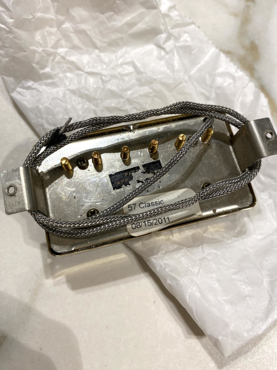 Vendo pastilla humbucker Gibson '57 Classic Plus, fabricada en 2011. Acabado dorado con desgaste visible por años de conciertos y sesiones de grabación. Estética relic natural con mucho carácter.