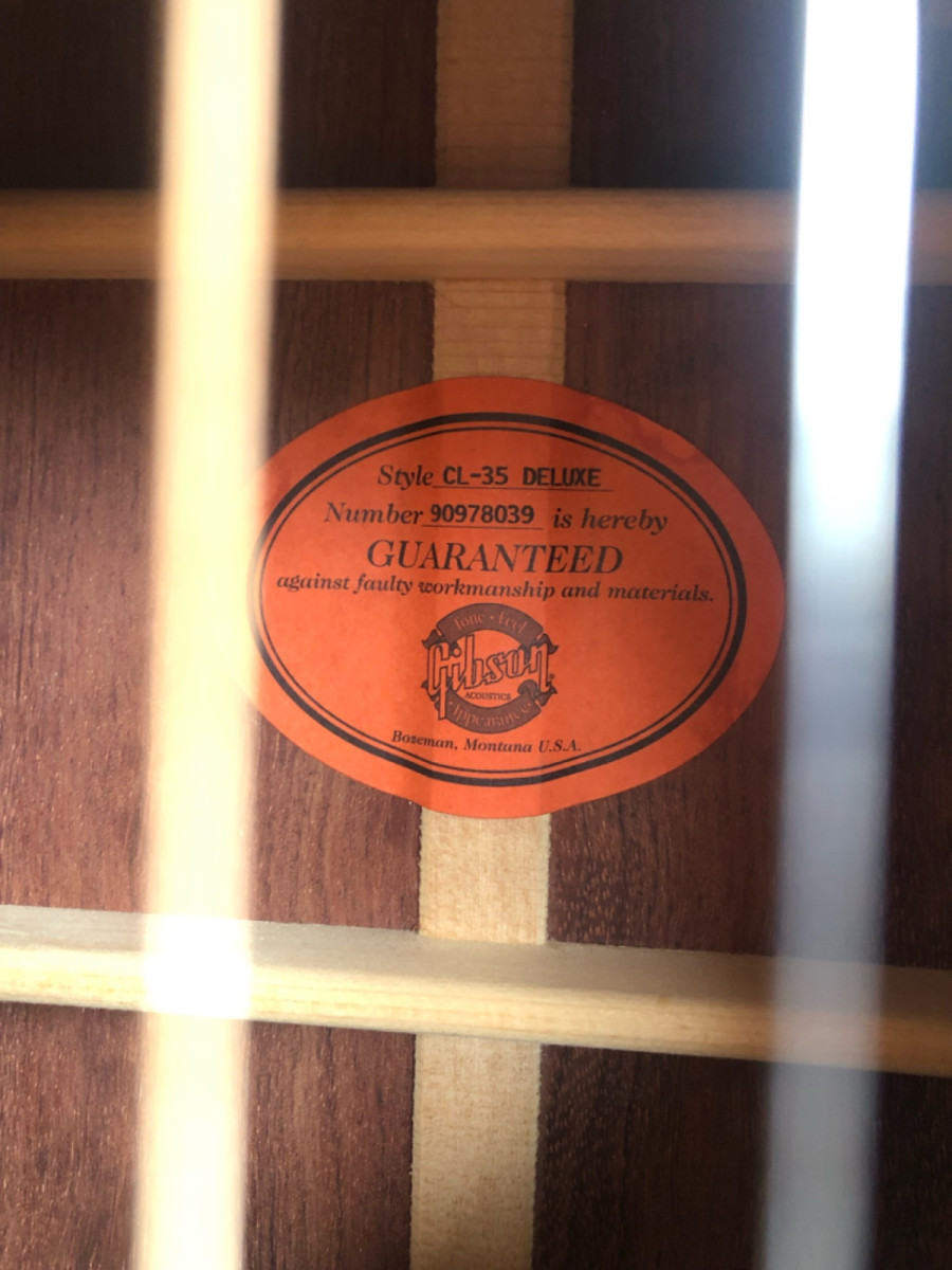 Vendo electroacústica Gibson CL-35 Deluxe. Del año 98. Etiqueta naranja, Época dorada de las acústicas de la marca. Nada que ver con los actuales estandares de calidad que se ven hoy en dia. evidentemente está descaralogada y es muy dificil de conseguir, y menos por el precio que pido.