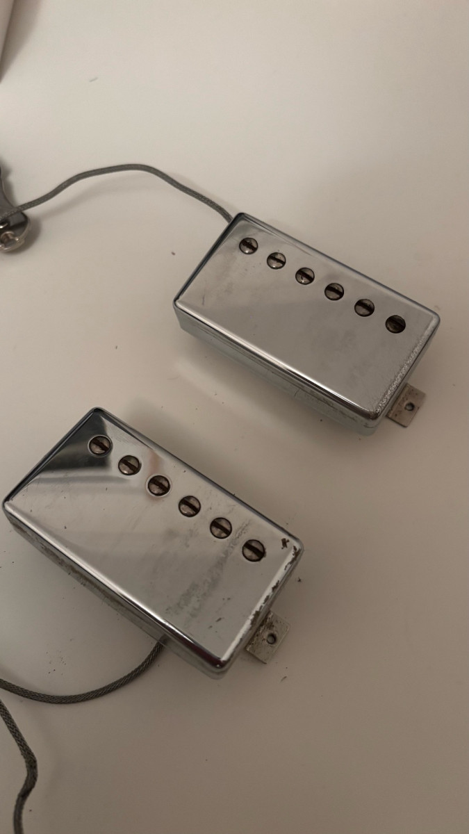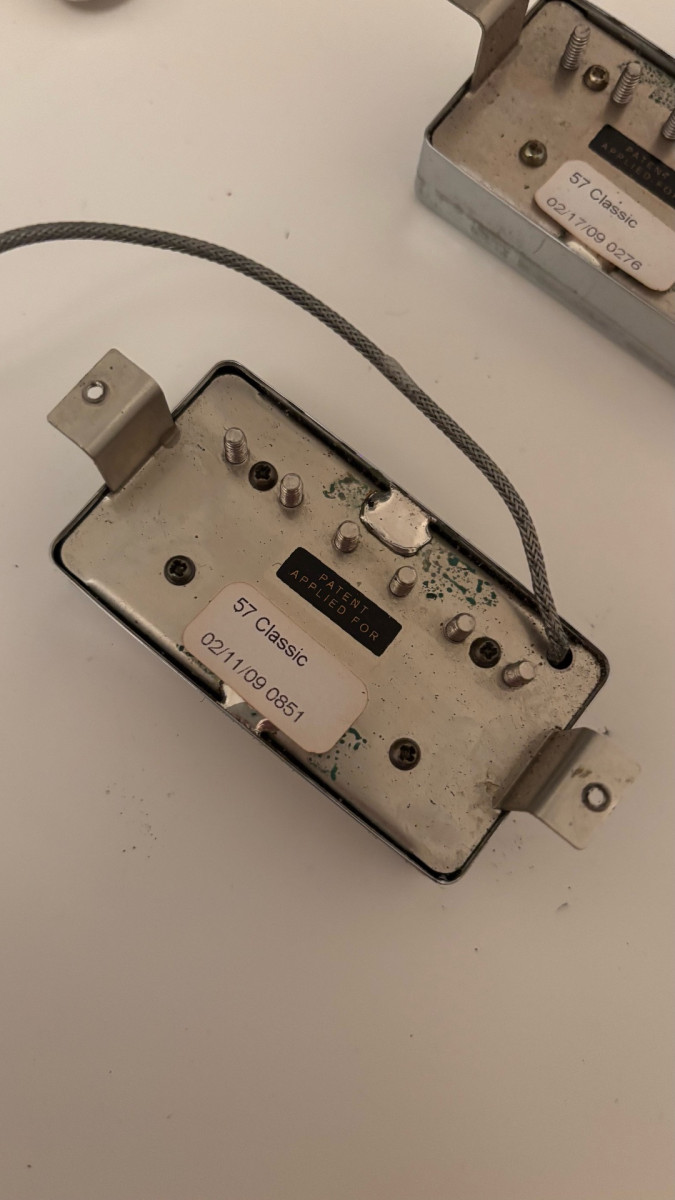 Pastillas Classic 57 del 2009, siempre montadas en una SG. Con buena longitud de cables, tornillos y muelles. Son cromadas, con algo de “relic” natural.