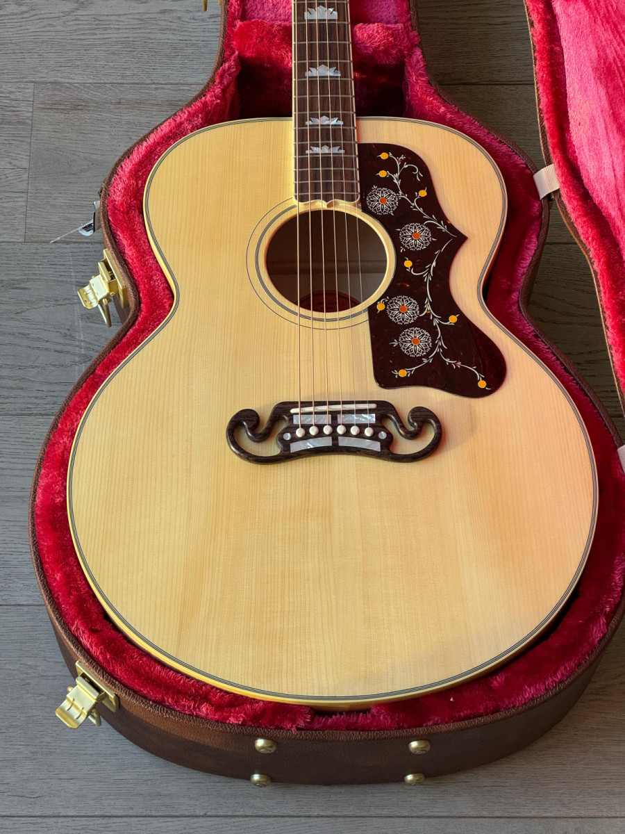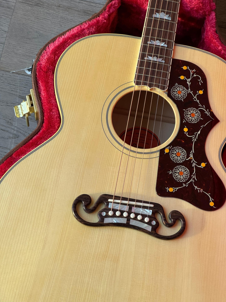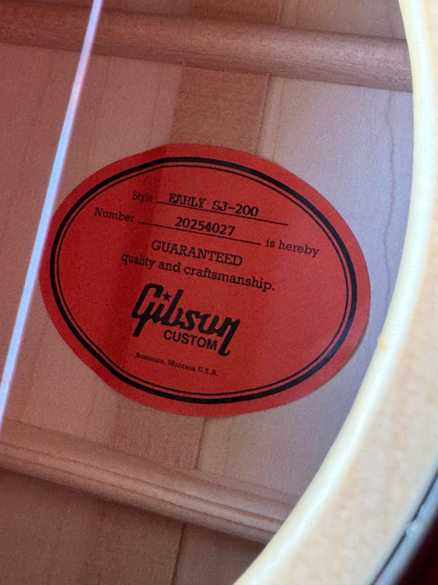 Cuerpo: Gibson SJ-200 con tapa de Red Spruce y fondo/aros de arce flameado.