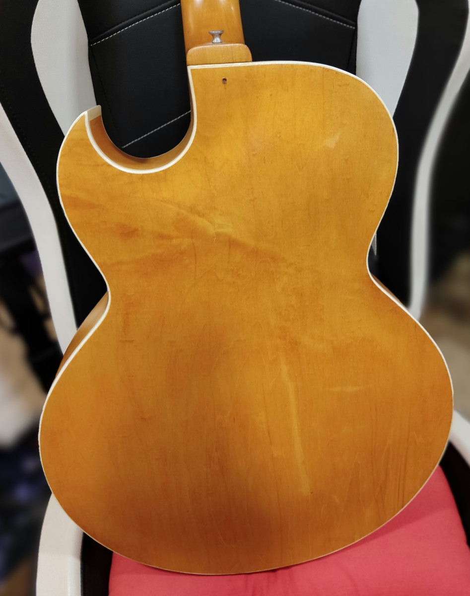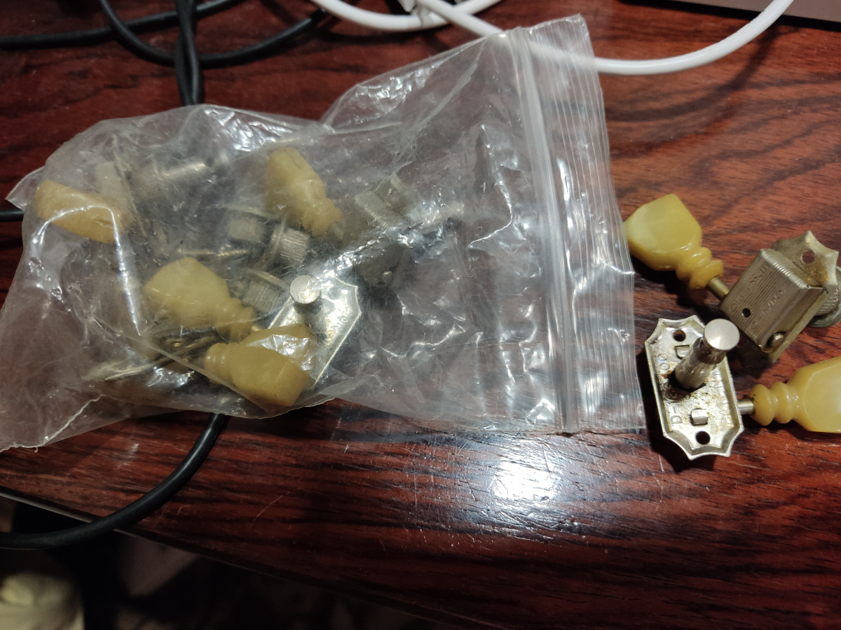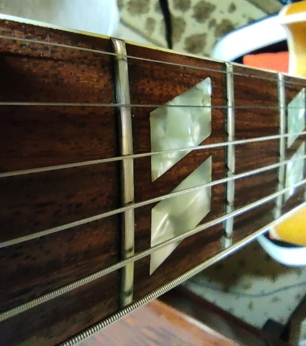 Solo se cambió el puente ( no conservo el original) y el clavijero por uno Gibson ( conservo las clavijas antiguas) . El golpeador también lo tengo ( yo siempre los quito)