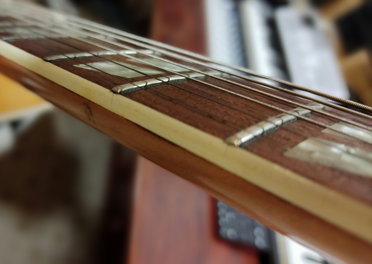 Es una preciosidad y suena espectacular. Está ajustada con acción muy baja, trastes en buenas condiciones.