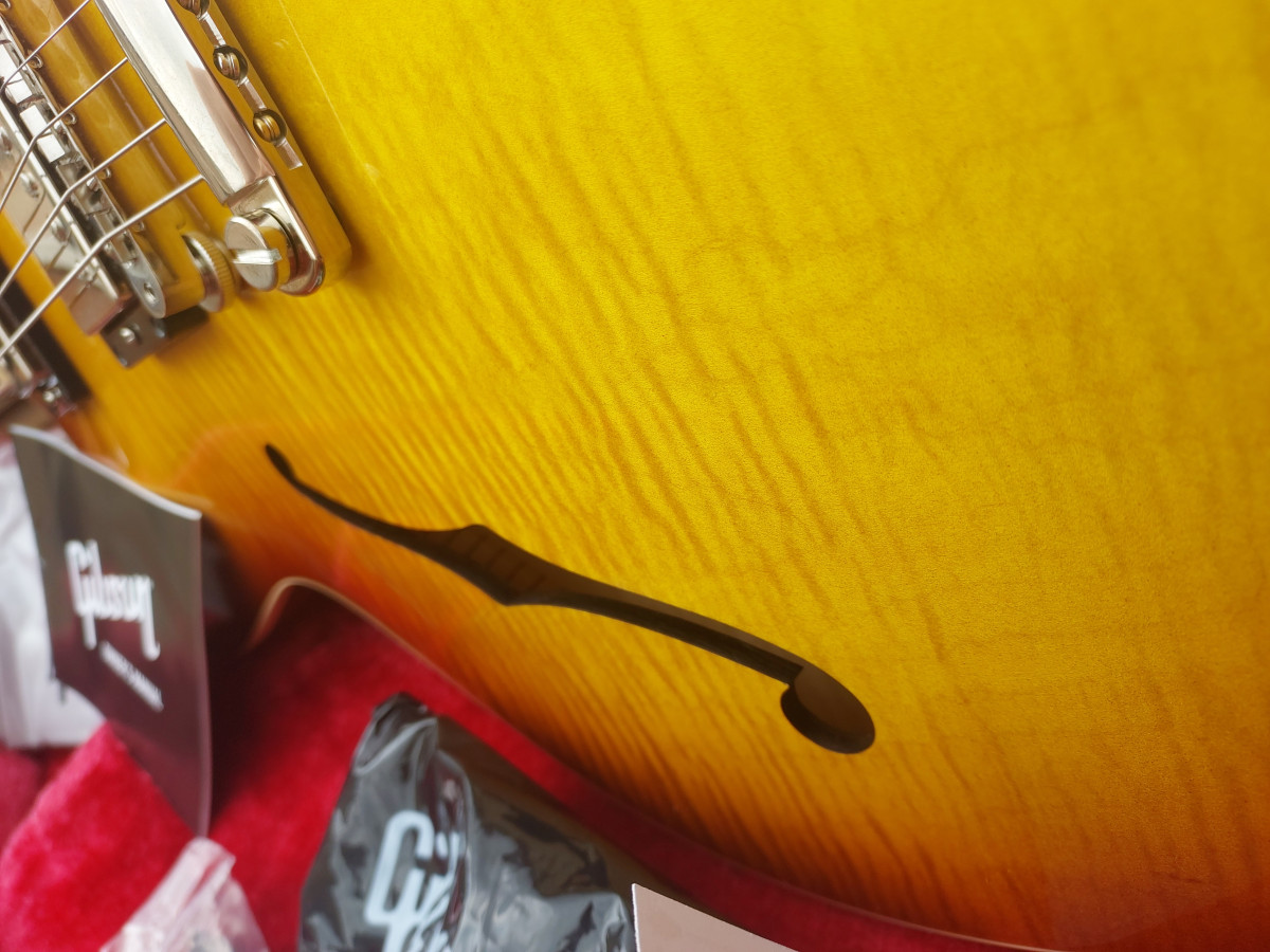 vedo mi Gibson ES335 Figured Ice Tea. Totalmente nueva, comprada hace unos meses para coleccion y no tocada. La estrenas tu.