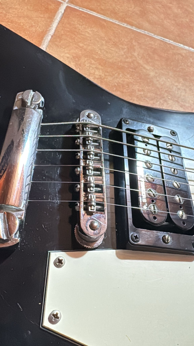 Pastilla puente cambiada , esta guitarra ha sido de un artista bastante famoso, usada en giras y grabaciones.