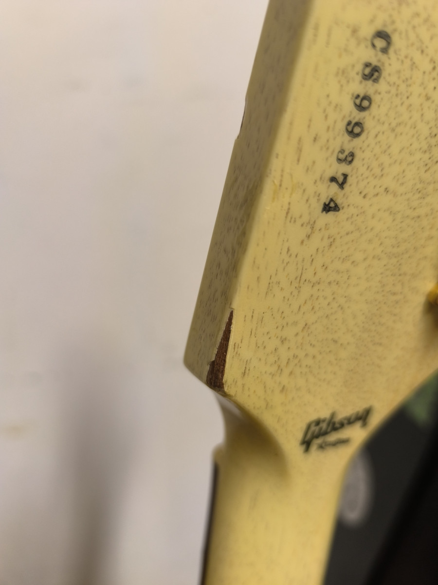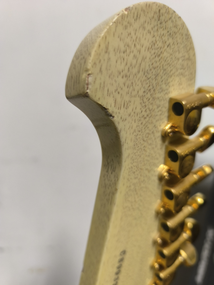 En las fotos podéis ver algún ding en la pala y una lasquita de pintura en la parte de atrás de la misma. Como la pala es muy grande, en un mal cálculo pegué en cierta ocasión contra los platos de la bateria y le hicieron eso, que por supuesto ni afecta lo más mínimo al sonido, ni a su funcionamiento.
