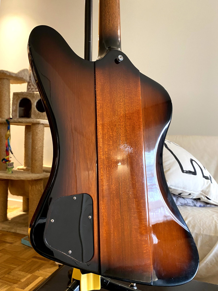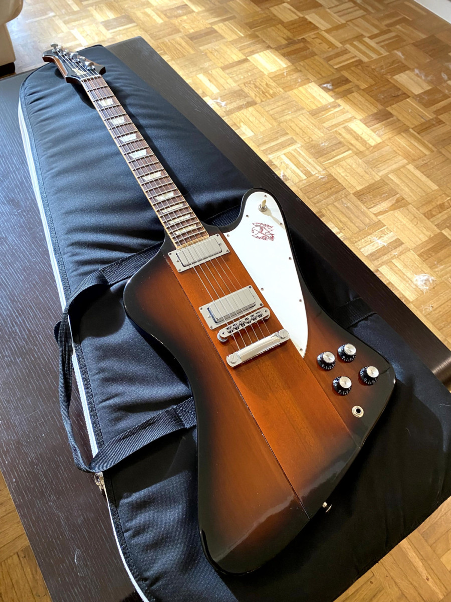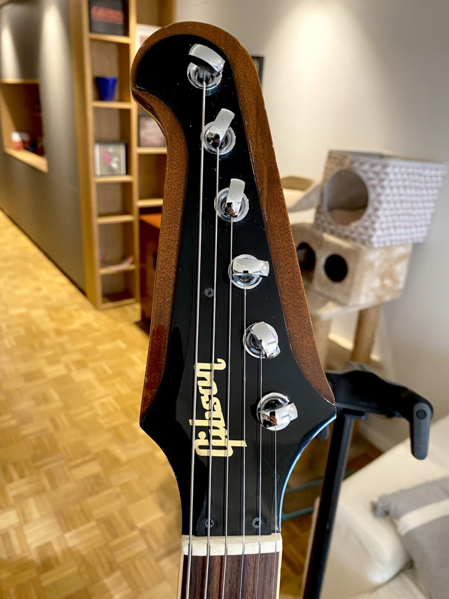 En venta guitarra eléctrica Gibson Firebird V del año 2016 (serie Traditional / T), toda original de fábrica y en estado excelente. Acabado Vintage Sunburst. Peso 3,5kg (super ligera!). Pala "1963" invertida, con parte de la madera a la vista. Construcción con mástil neck-through (actualmente DESCATALOGADA, ya no disponible en Gibson USA). Recién ajustada. Incluye su funda acolchada Gibson y todo el "case candy" original. Se puede ver y probar en Barcelona o Mallorca.