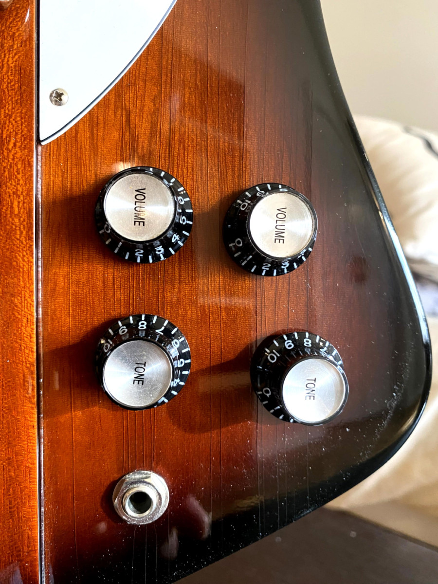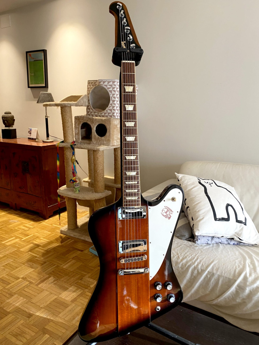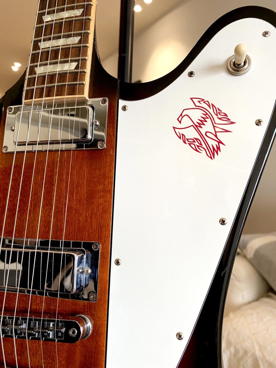 En venta guitarra eléctrica Gibson Firebird V del año 2016 (serie Traditional / T), toda original de fábrica y en estado excelente. Acabado Vintage Sunburst. Peso 3,5kg (super ligera!). Pala "1963" invertida, con parte de la madera a la vista. Construcción con mástil neck-through (actualmente DESCATALOGADA, ya no disponible en Gibson USA). Recién ajustada. Incluye su funda acolchada Gibson y todo el "case candy" original. Se puede ver y probar en Barcelona o Mallorca.