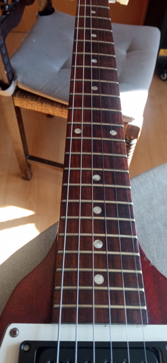 Mucha pegada y cuerpo. Tonazo a rock 100%. Trastes en muy buen estado. Año 2012, por lo visto muy buen año de fabricación, cosa que corroboro con esta estupenda guitarra. Estuche original currado y una de las pestañas de cierre rota, pero también la mas innecesaria, totalmente operativo. Todo original a excepción de las pastillas que ahora lleva montadas un set Dimarzio Evolution (le puse unos marcos negros por estetica que quitaria), no conservo las pastillas originales 500t/496r ni el Coa. Ofrezco la posibilidad de ponerle en su lugar pastillas Gibson nickel ( 57plus+ 490r por algo mas, todo es negociable). No tiene reparaciones ni golpes, solo desgaste y dings. Envio mas fotos por wassap a los realmente interesados. No me interesa ningun tipo de cambio solo dinero.