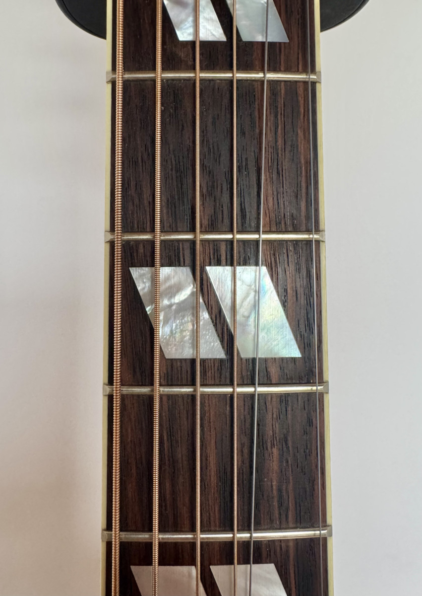Tapa de Sitka spruce, aros, fondo y mastil de mahogany, diapasón y puente de palisandro, incrustaciones en nacar… Misma construcción que la Standard con acabado Faded.