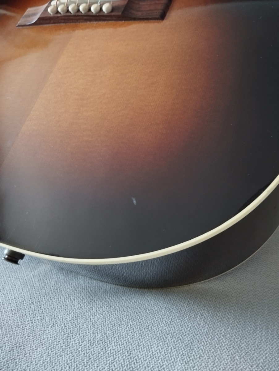 El acabado Vintage Sunburst ya ha empezado a envejecer con mucho estilo. Tiene algunas marcas superficiales y rasguños por el uso, pero suena mejor que nunca.