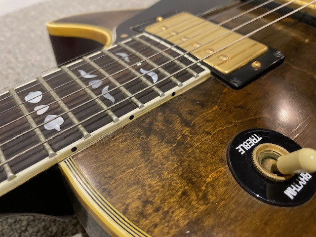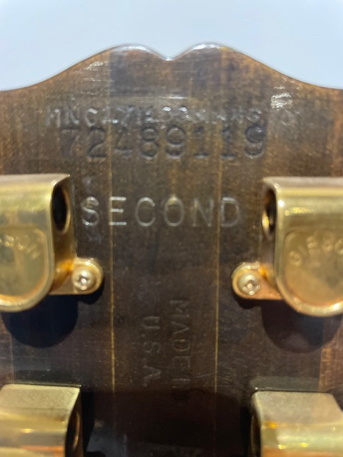 Vendo mi Gibson Les Paul Artisan, es del año 1979 y su numero de serie es 72489119. Se fabricó el 5 de septiembre de 1979, en la fabrica de Gibson en Kalamazoo. Cuerpo solido, tapa de nogal. Mastil de caoba. La compré en USA en 1998, y lleva conmigo desde entonces. La pala tiene marcada "second", pero nunca supe el por que, parece ser que fue una guitarra para uso en la fabrica, que era algo que ocurría en la década de los 70s..