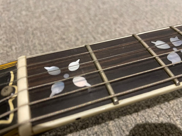 Esta en muy buen estado para sus mas de 45 años. Pesa 5,6 kgs y tiene un gran sonido rockero y un sustain tremendo. La restrastree en el año 2000 y desde entonces, apenas la he utilizado Es un modelo que creo que se hicieron pocas, la marquetería de los trastes y de la pala es muy bonita. No busco cambios, solo venta. Gracias