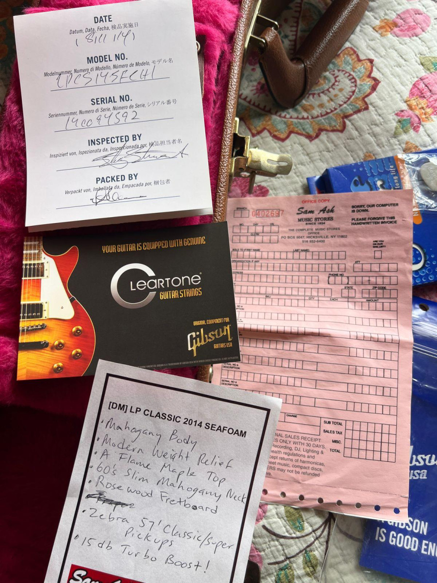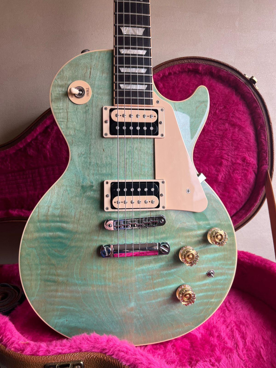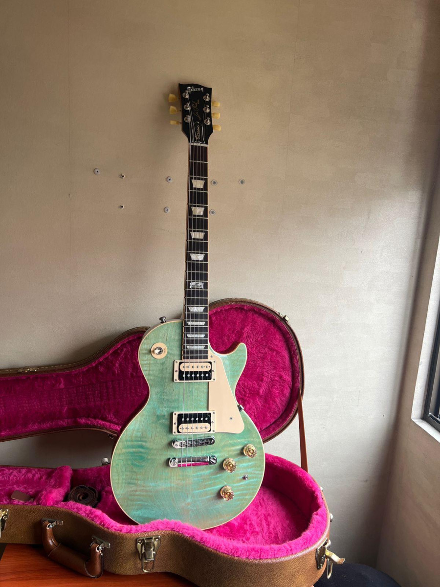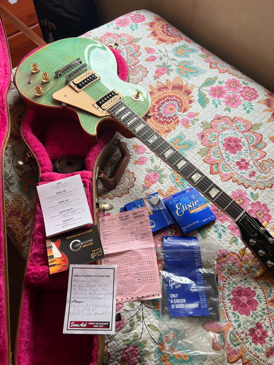 Se vende Gibson Les Paul Classic del año 2014, una edición limitada y conmemorativa en el acabado Seafoam Green. Es una guitarra que se ha cuidado mucho y mantenido en un estado excepcional. Los trastes están prácticamente nuevos y el desgaste cosmético es mínimo.