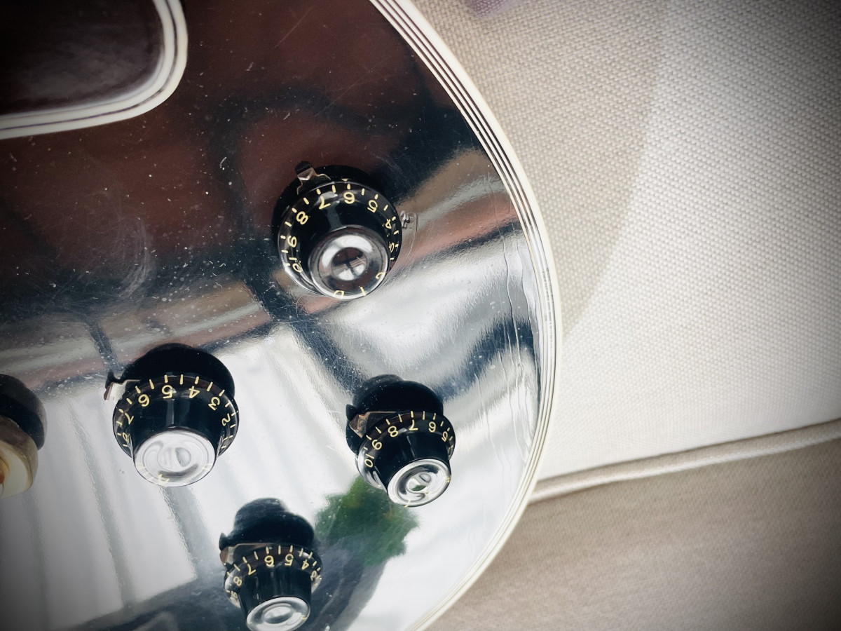 Los Knobs se sustituyuron por unos knobs top hat negros de Montreux) aunque la entrego con unos knobs Gibson top hat negros o euros con la tapa dorada