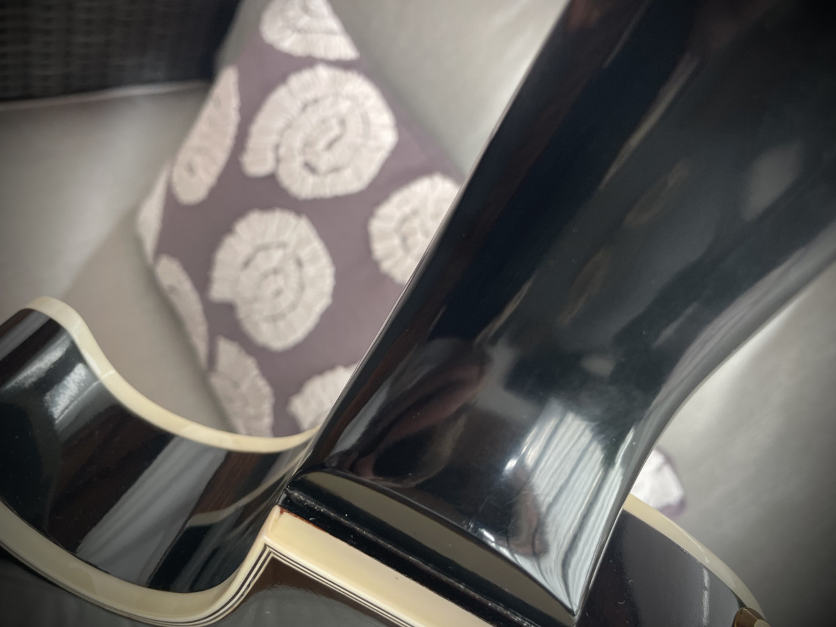 La guitarra tiene algún Craquelado en la pala y en el cuerpo y algunas marcas en la nitro , como digo estas guitarras negras se marcan muy rápido