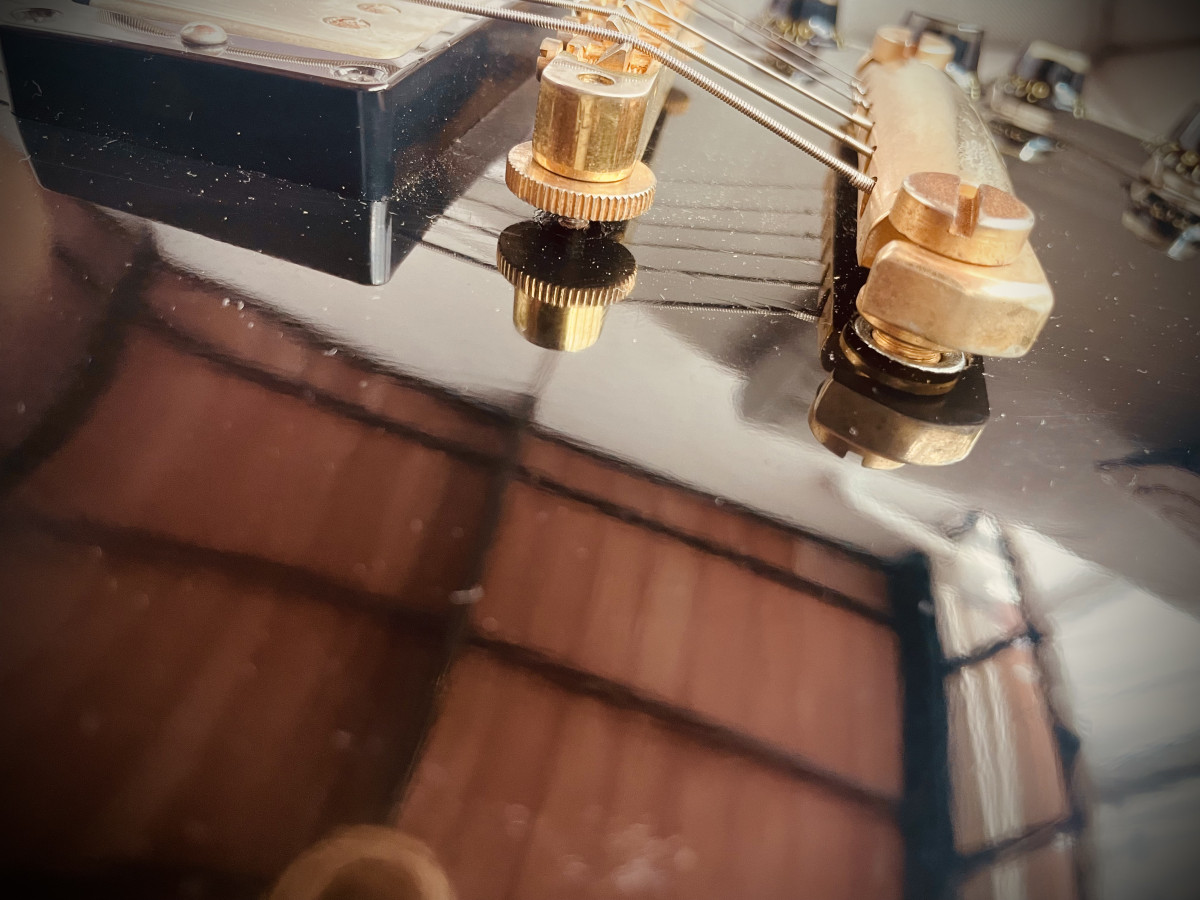 - Puente Nashville por abr 1Gibson Gold (59,90) mas quitar los postes nashvile tapar agujeros con caoba de honduras pintar con nitro e intalar postes de acero largos que llegan a la caoba y no al arce de la tapa.