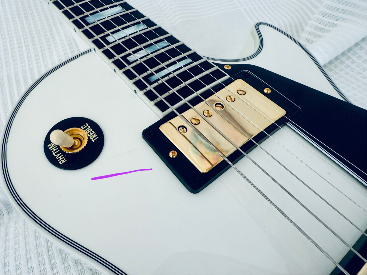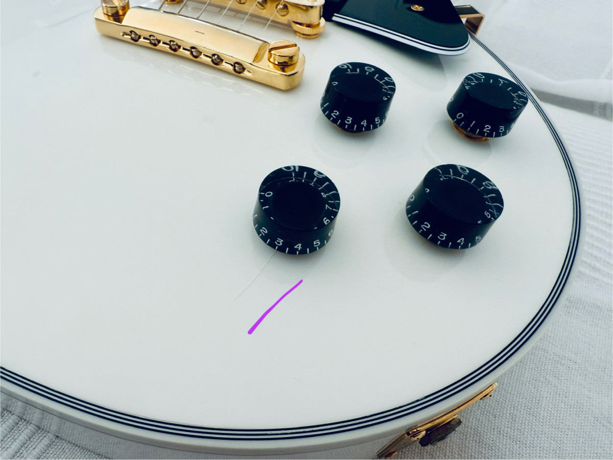 * La guitarra no tiene ni el más mínimo ding, repito que es para reestrenar, pero advierto que esta unidad tiene tendencia al craqueado fácil como puede verse en las fotos. Algo que hará las delicias de los amantes relic pero puede no gustar a quien quiera el acabado inmaculado.