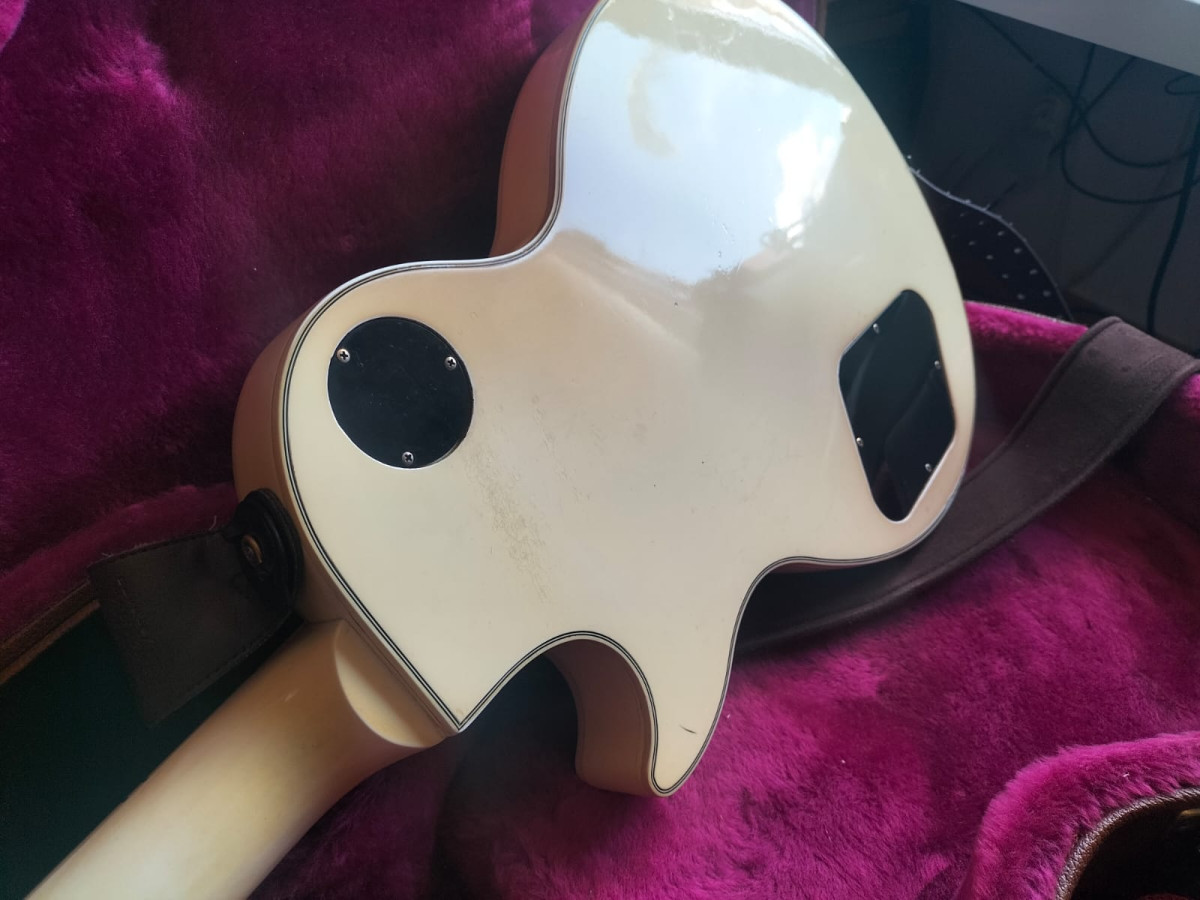 De 1992 Good Wood Era. La guitarra está en buen estado con sus marcas de uso típicas y crackelado que le dan aún más mojo. Sustain infinito y la pegada que esperas de una custom.
