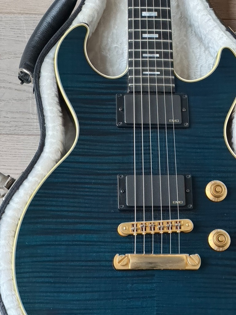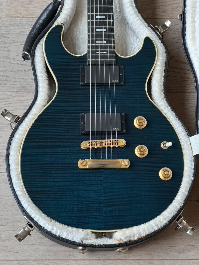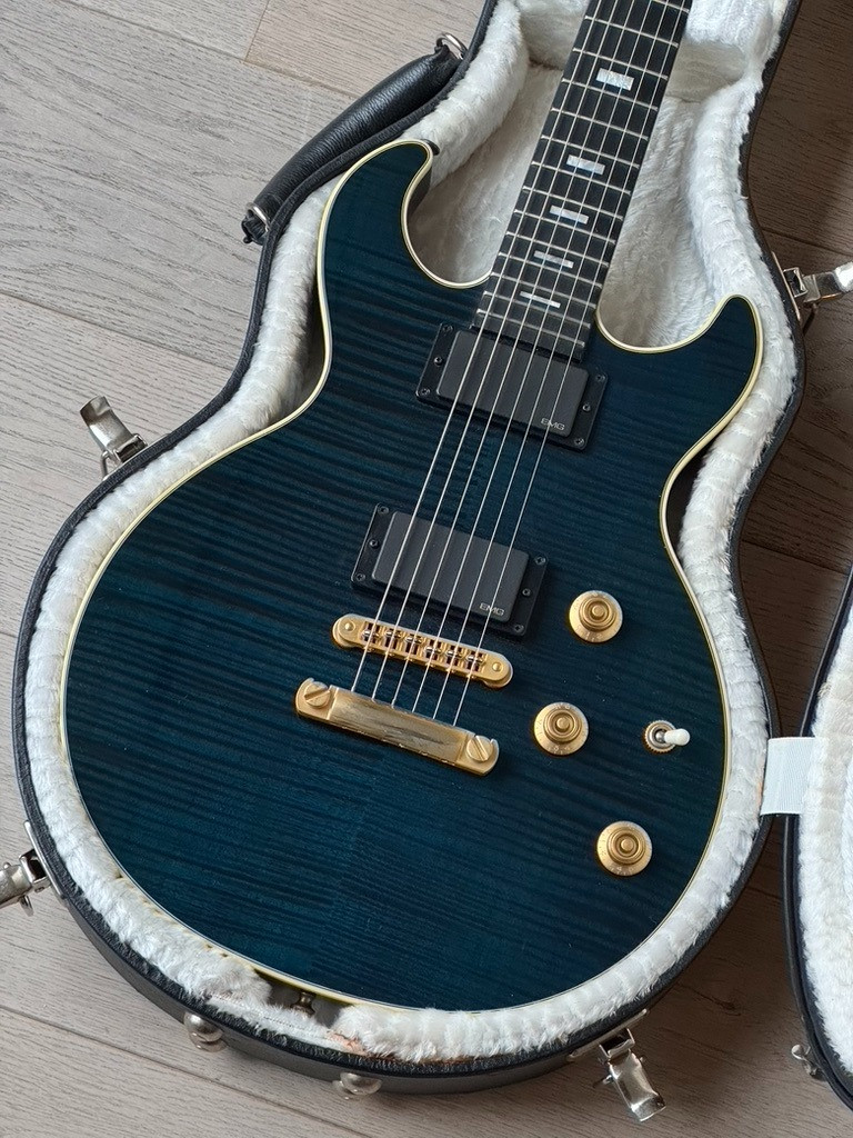 Una guitarra súper rara y exclusiva, parte de una edición limitada de solo 1,000 unidades fabricadas. Este modelo destaca por su impresionante acabado Trans Blue y su diseño versátil, que combina tonos eléctricos potentes con sonidos acústicos únicos.