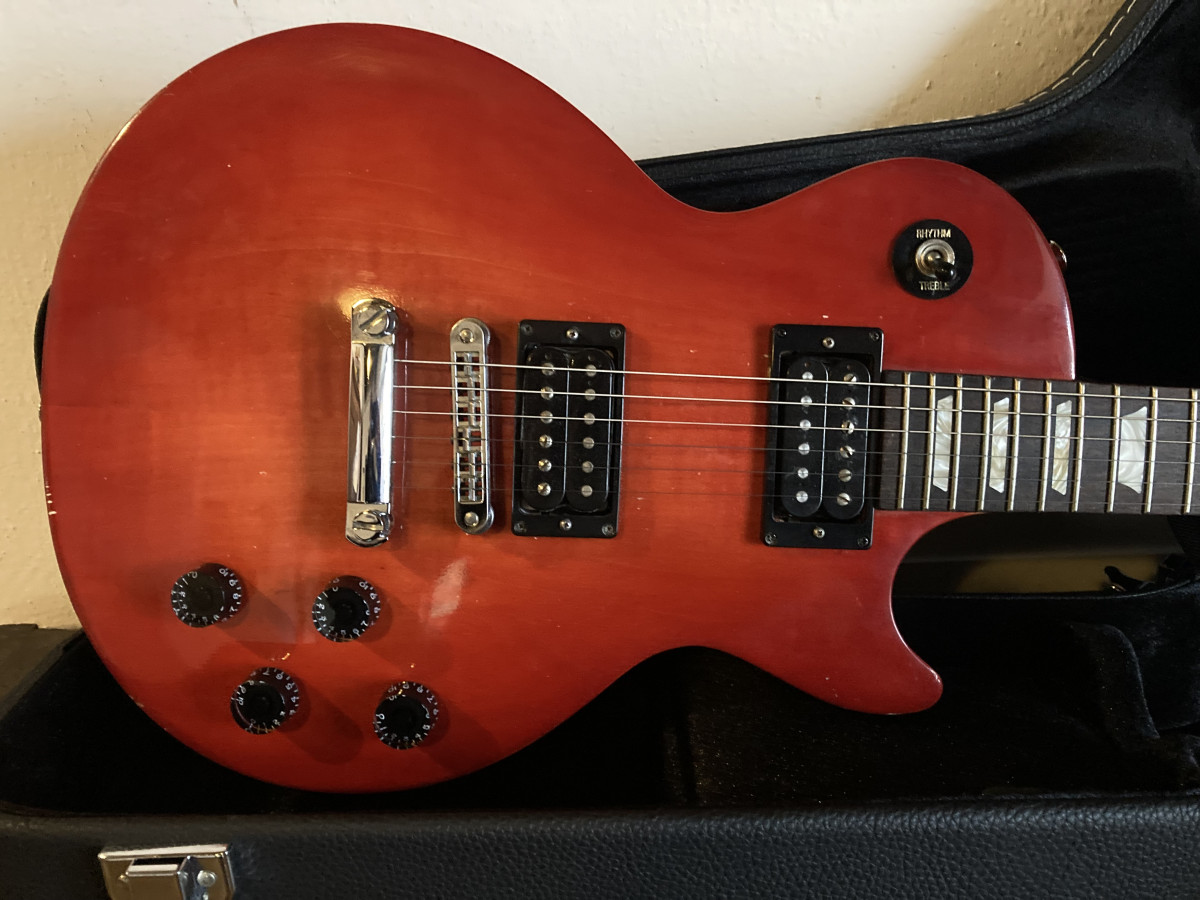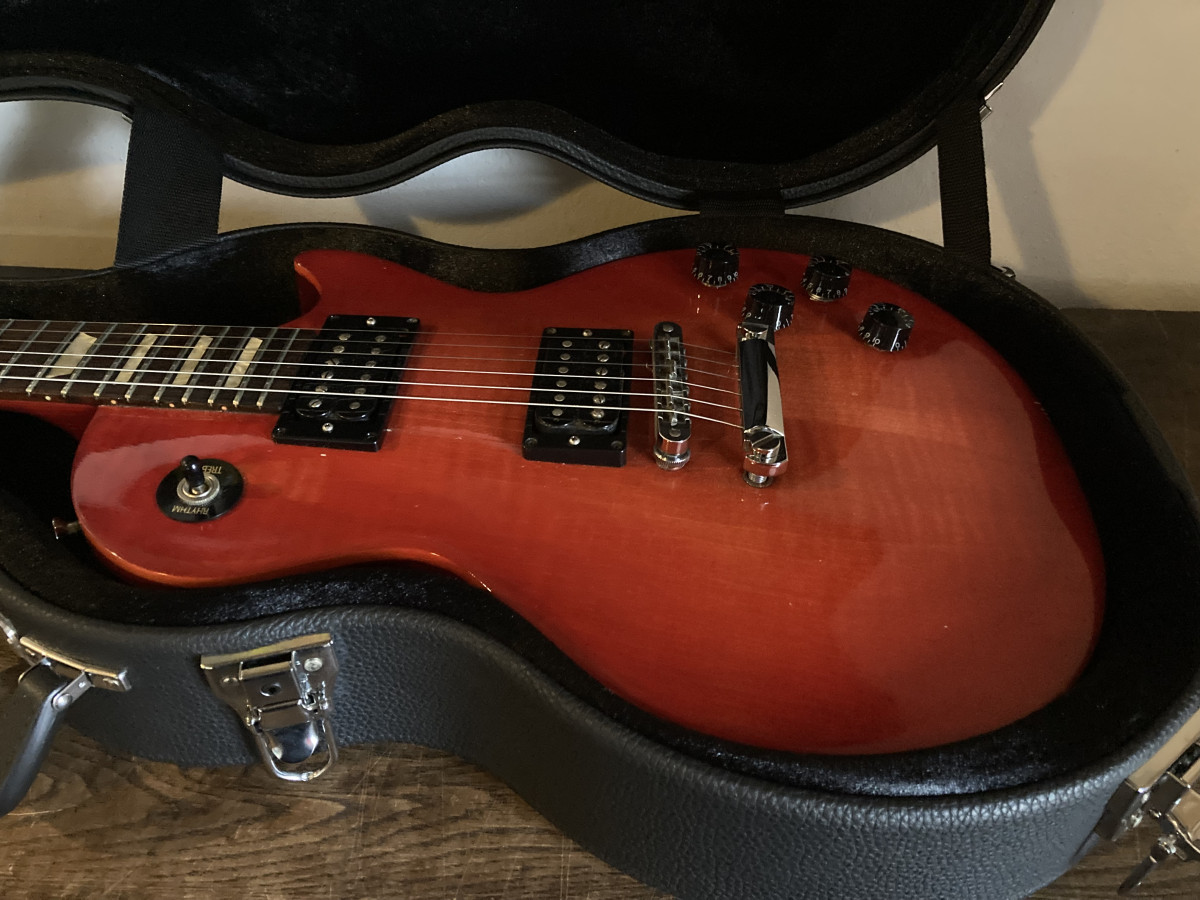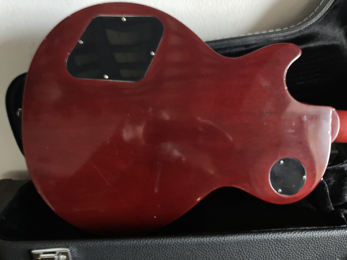 Como veis de “futura” ya queda poco. Pesa 4 kilos de caoba con tapa de arce A, diapasón de rosewood, guitarra con algunos ding y roces típicos del uso pero en general está en muy buen estado, trastes perfectos. La toco a diario, suena cañón y es muy cómoda, lleva perfil 60 en mástil, solo cambio porque tengo otras Gibson y alguna tiene que salir.